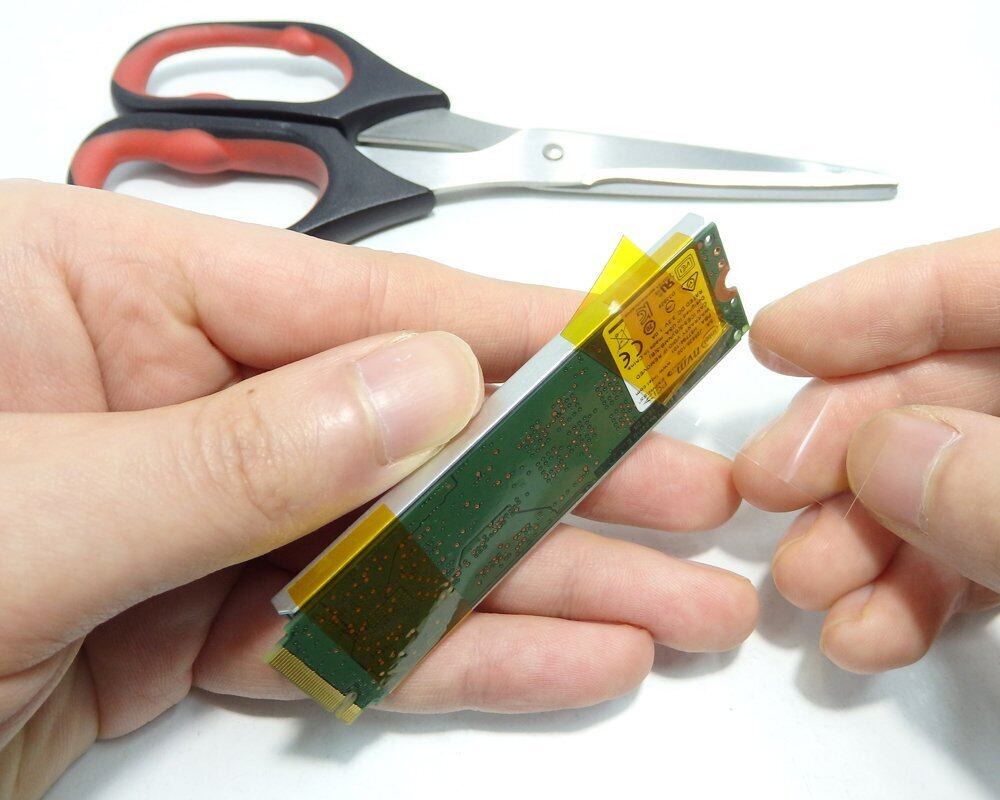 ヒートシンクとM.2 SSDの固定には耐熱絶縁テープでガッチリ固定