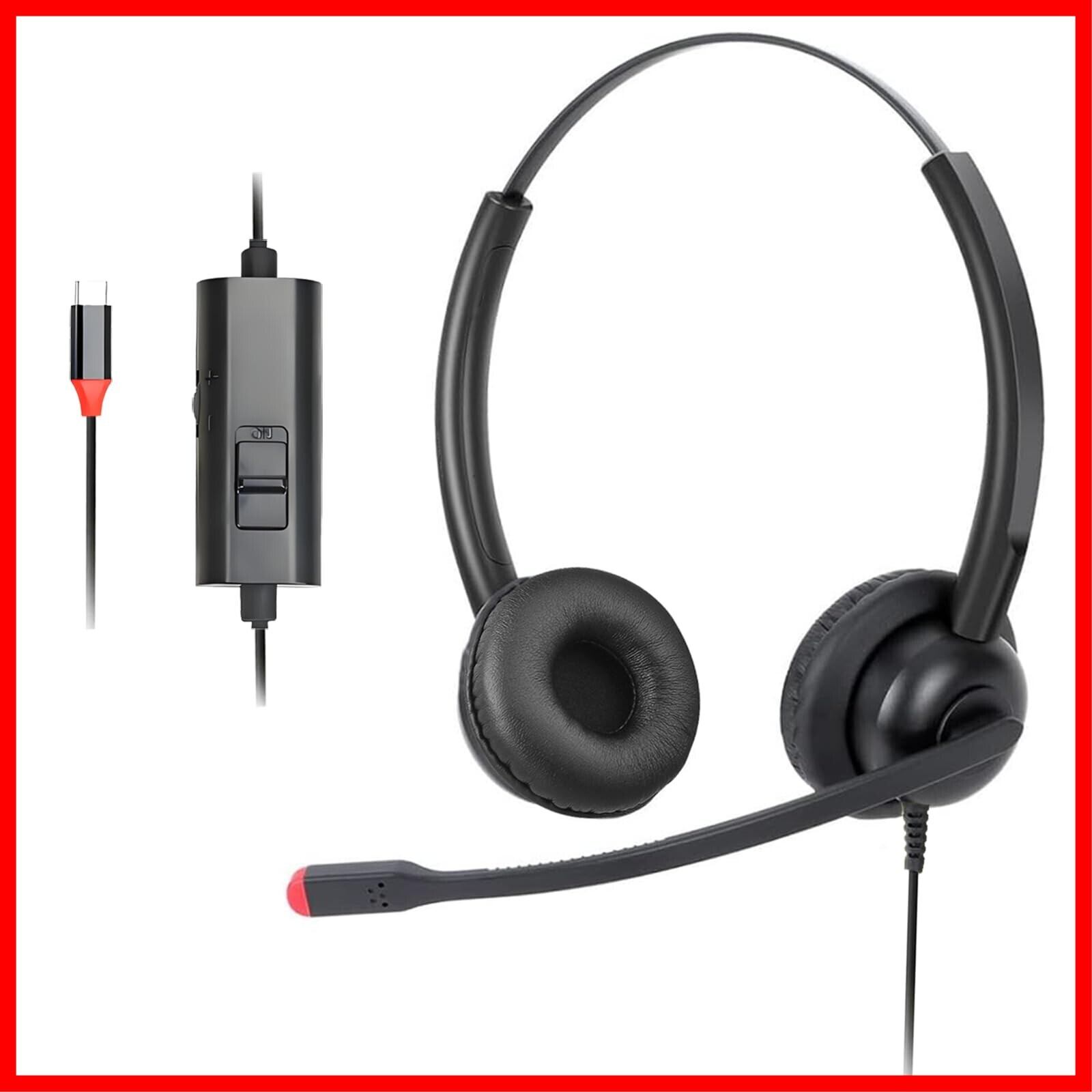 CallezヘッドセットUSB-C マイク付き ノイズキャンセリング PC用ヘッドセット TypeC有線ヘッドホン 両耳 リモコン付き 着信応答/終話 音量調節 ミュート機能付き タイプc接続 スマホ Mac PC対応 Web会議/テレワーク/オンライン通話/在宅勤務/オフィス 350°回転 左右両兼用 軽量