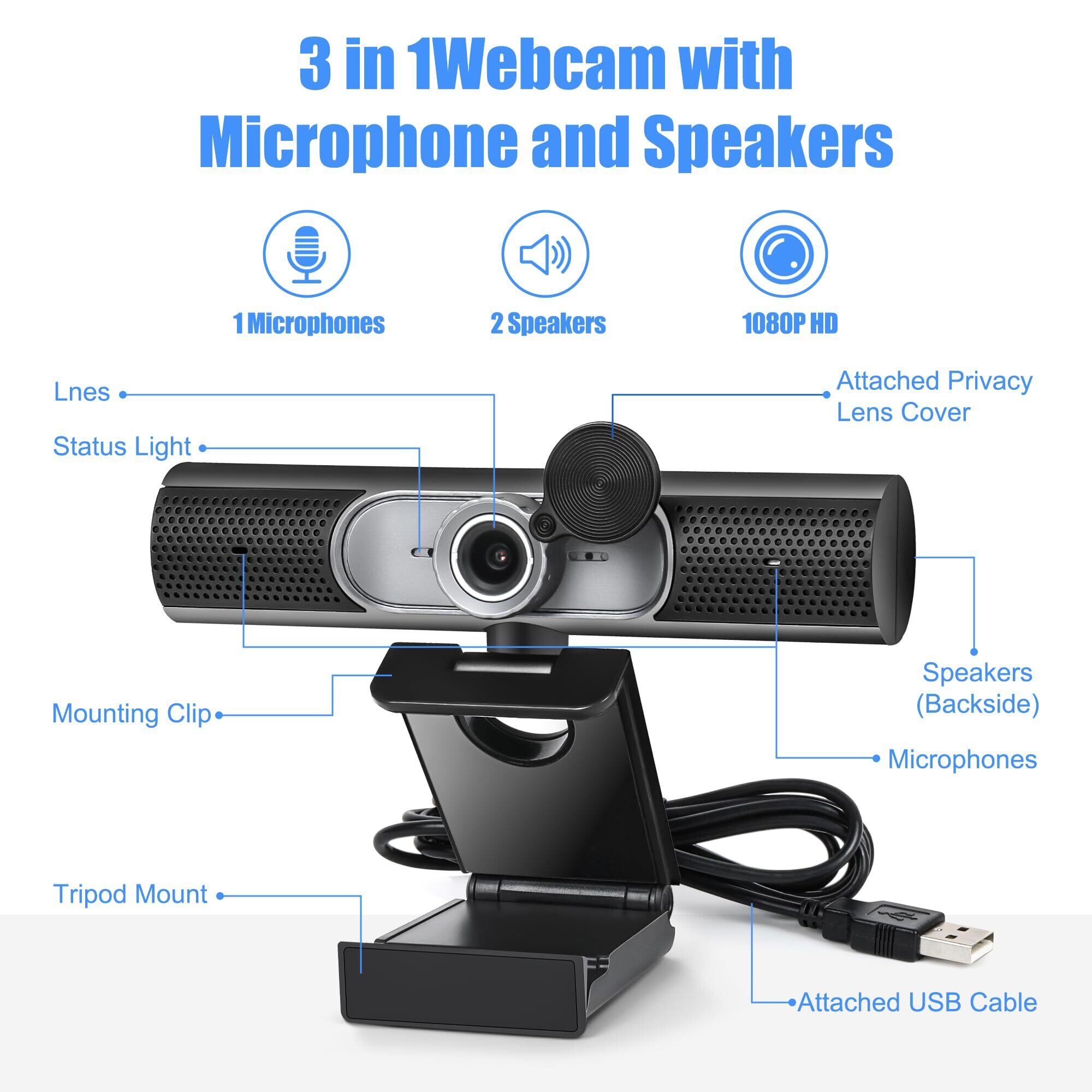 ウェブカメラ(マイク・スピーカー内蔵)|1080P デスクトップ/ノートPC用 USB接続 物理プライバシーカバー付き プラグ&プレイ ストリーミング対応 広角レンズ 3-in-1
