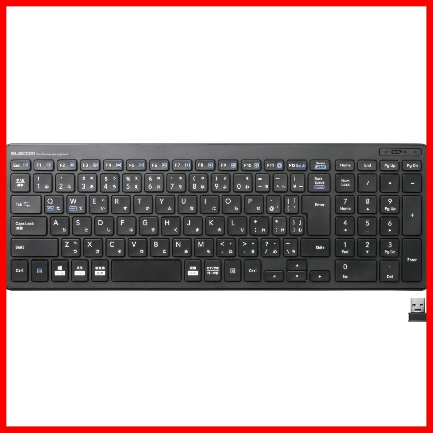 エレコム ワイヤレスキーボード コンパクト テンキー付 パンタグラフ式 薄型 ブラック TK-FDP099TBK/EC