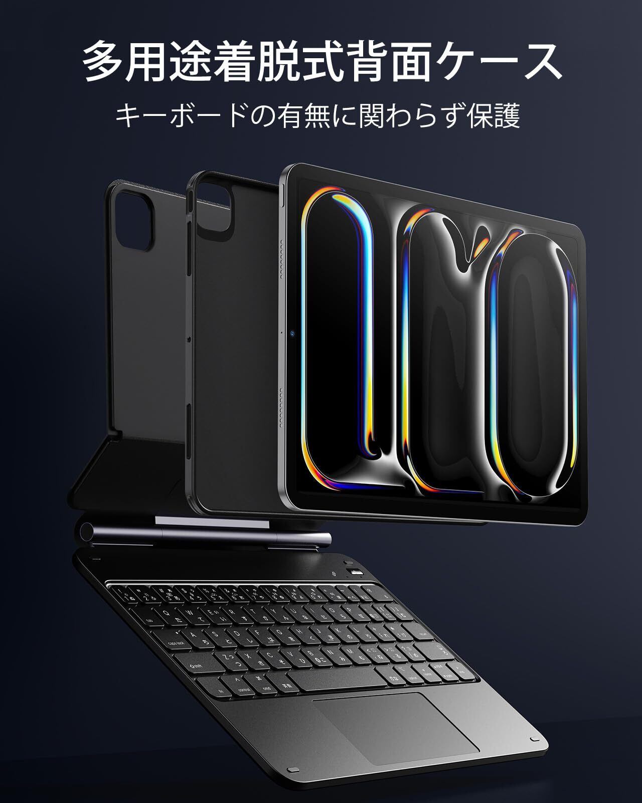 ESR iPad Pro 11 M4 2024 キーボード付きケース 簡単セット磁気スタンド付き 縦向きモード 横向きモード 脱着可能保護ケース Rebound 360シリーズ ブラック