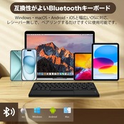 【軽快かつ安定したタイピングを実現するパンタグラフ式ワイヤレスキーボード】 このBluetooth無線キーボードは、高品質なパンタグラフ構造を採用し、キーの中心を正確に押さなくてもスムーズに入力が可能です。各キーが独立したアイソレーション設計で、指が隣のキーに触れにくく、タイプミスを軽減。長時間のタイピングでも快適に使用できます。 さらに静音仕様のキーを採用しており、夜間や早朝、自宅での作業はもちろん、カフェ、図書館、コワーキングスペースなど周囲に配慮が必要な場所でも安心して使用できます。薄型・軽量で持ち運びやすく、iPad、MacBook、WindowsノートPC、Androidタブレットなど幅広いBluetooth対応端末に対応。在宅ワークや外出先でも活躍する充電式bluetooth キーボードです。