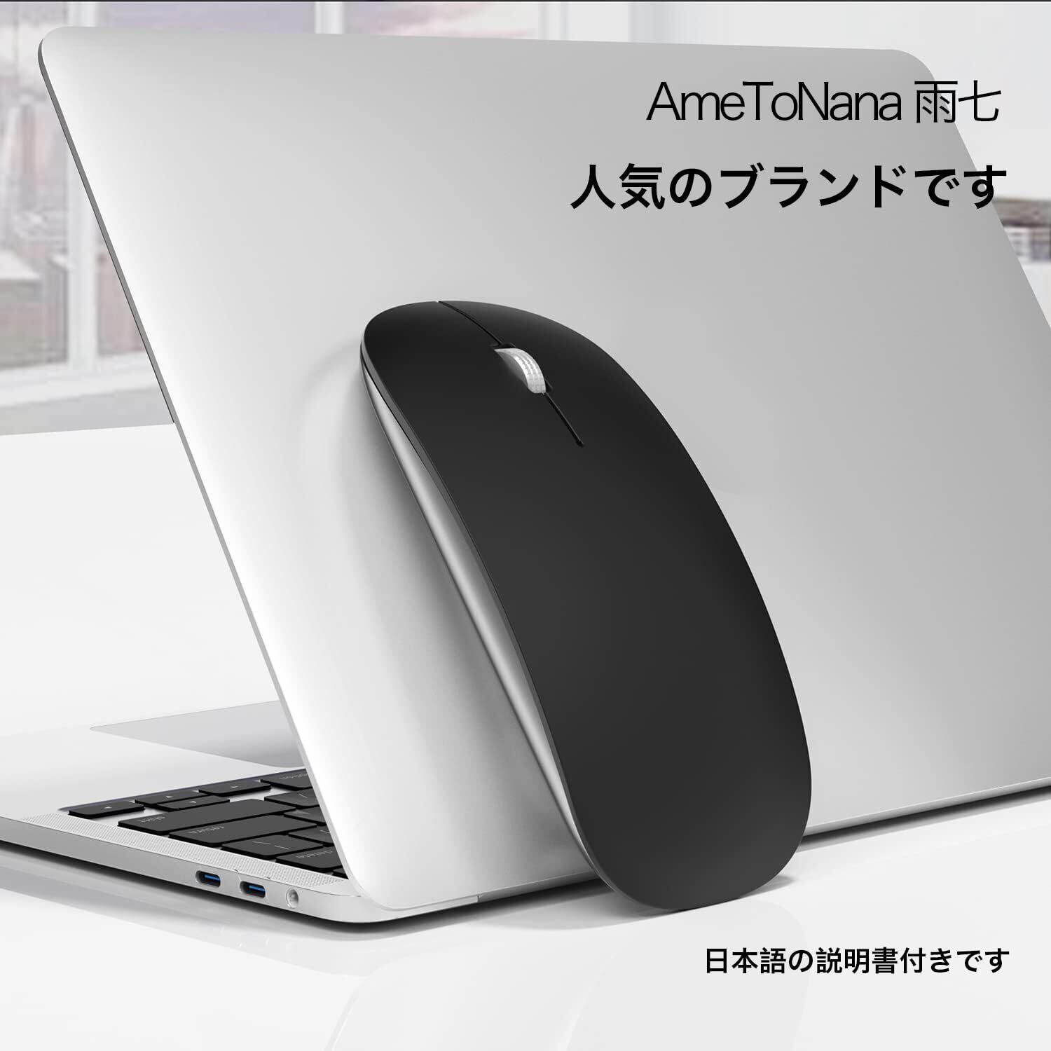 AmeToNana 雨七 ワイヤレスマウス Bluetooth Mouse 静音マウス 薄型2.3cm 指紋防止 ミニマリズム 充電式 省エネルギー Windows/Mac/Android/Surface/iPad OS/ブルートゥース 対応 TELEC認証取得済み 日本語取扱説明書 艶消し黒
