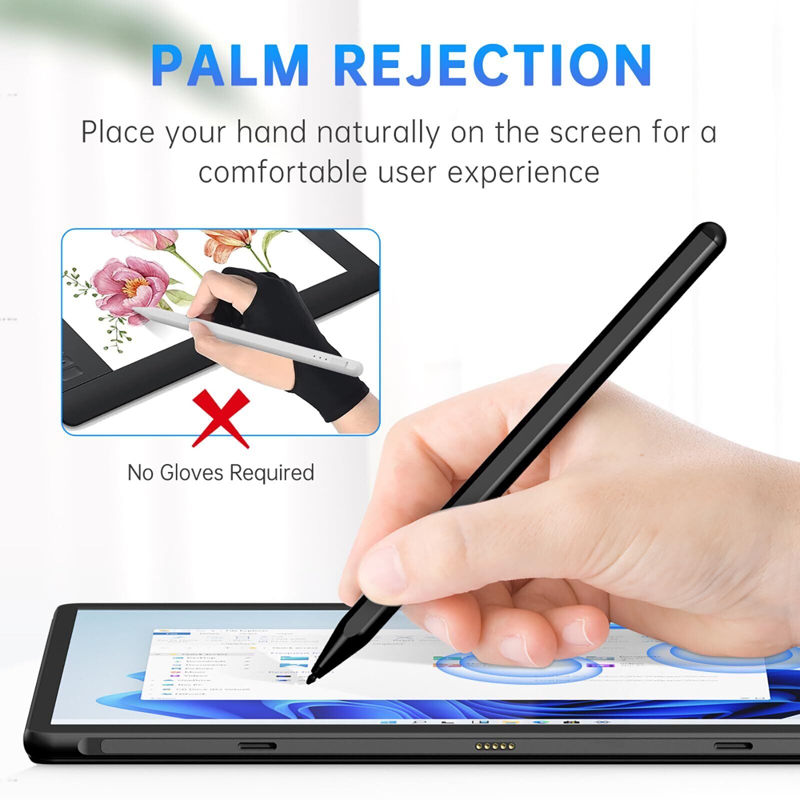 Uogic スタイラスペン Microsoft Surface Pro 10/9/8/X/7+/6/5/4/3/ Surface Go 3/2/1 Surface Laptop/Studio/Book 4/3/2/1 手のひらリジェクション付き 滑らかな書き心地 1024レベルの圧力 USB-C 高速充電、ブラック
