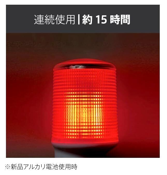 新品乾電池(アルカリ単四2本)の使用で連続点滅(赤)15時間以上が可能です。