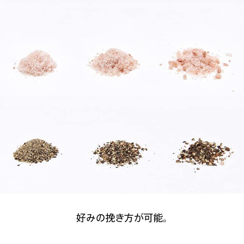 この電動ミルは、塩や胡椒だけでなく、スパイスやハーブなど多彩な調理にも使用可能です。料理の幅が広がり、日々の食卓をもっとクリエイティブに彩ります。軽量でコンパクトなデザインは、収納にも便利で、使うシーンを選びません。
