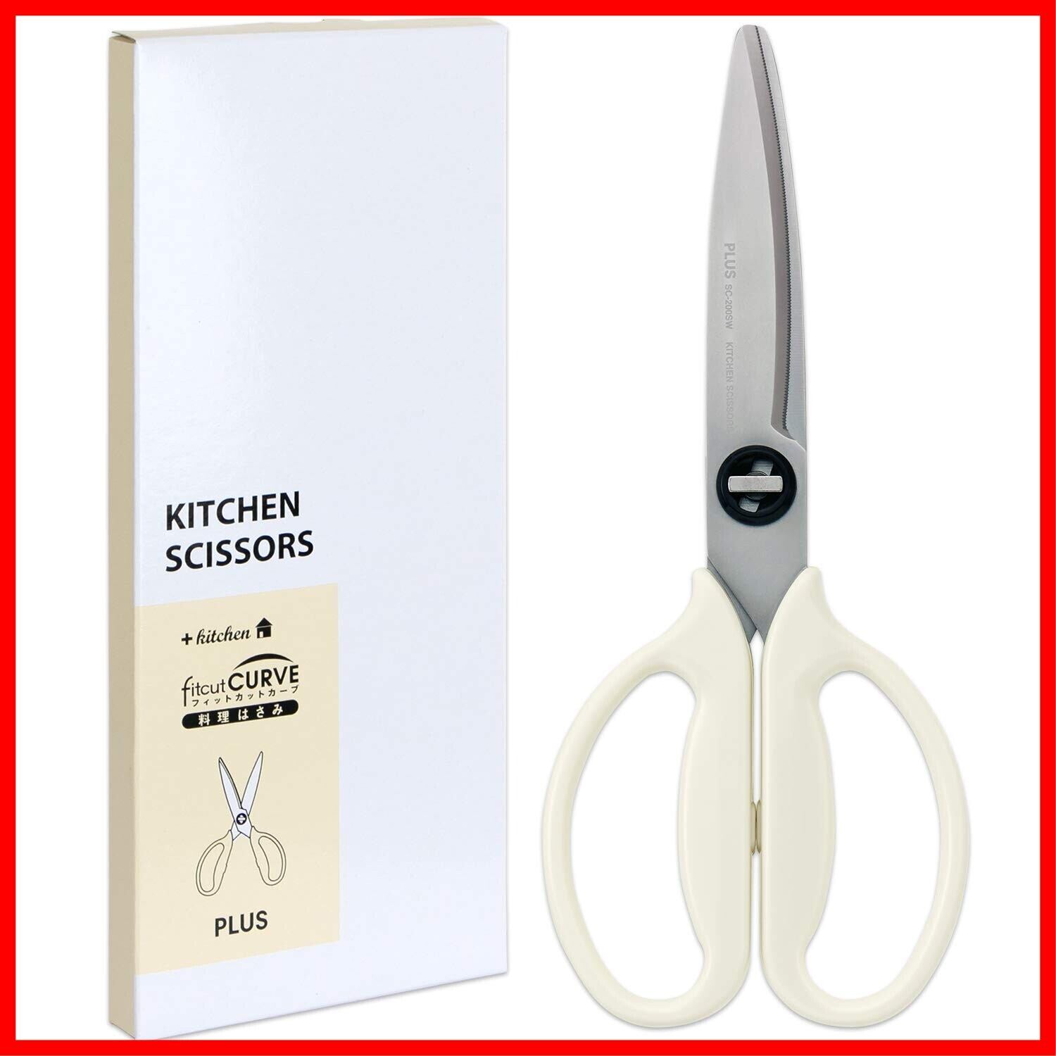 【在庫セール】プラス キッチンバサミ 料理ばさみ 分解 洗える 丸洗い 食洗機対応 ストレスのない切れ味 ステンレス フィットカットカーブ アイボリーホワイト 紙箱包装 35731