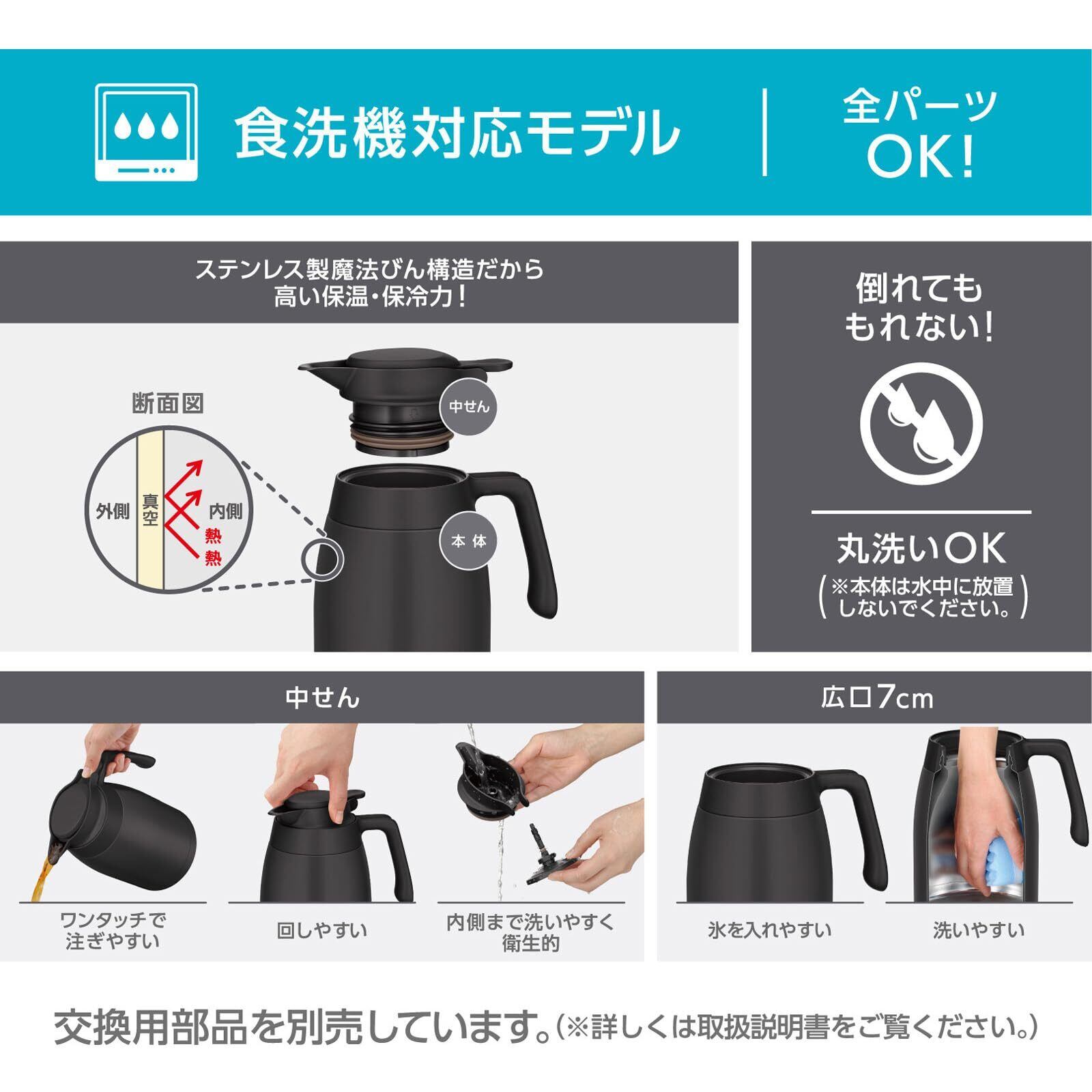 【食洗機対応モデル】 サーモス ステンレスポット 1.0L ダークグレー 保温ポット 卓上ポット 保温保冷 広口設計 TTG-1000 DGY