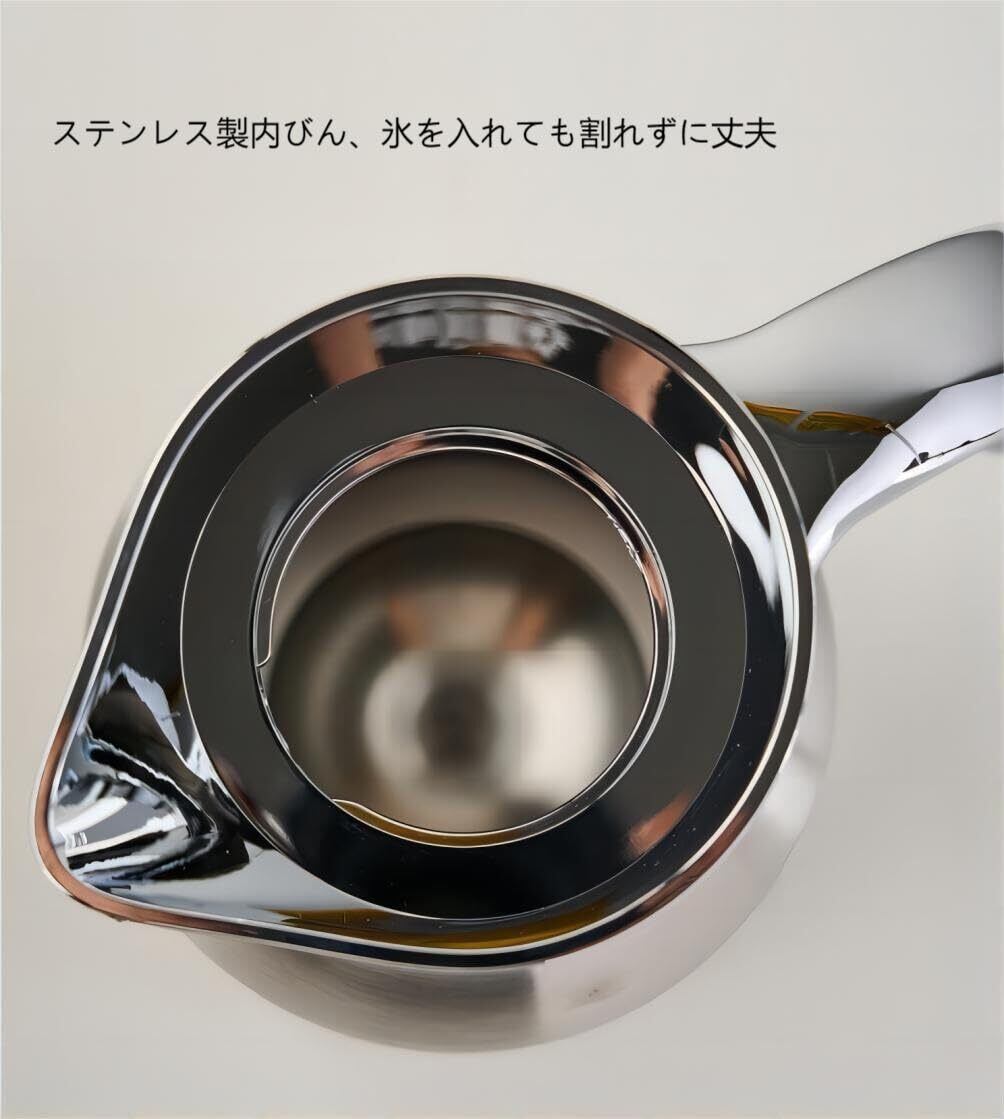 【材質】ステンレス素材を生かしたシンプルなデザインのポットは、保温も保冷もでき、飲みものを最適の温度に保ちます。