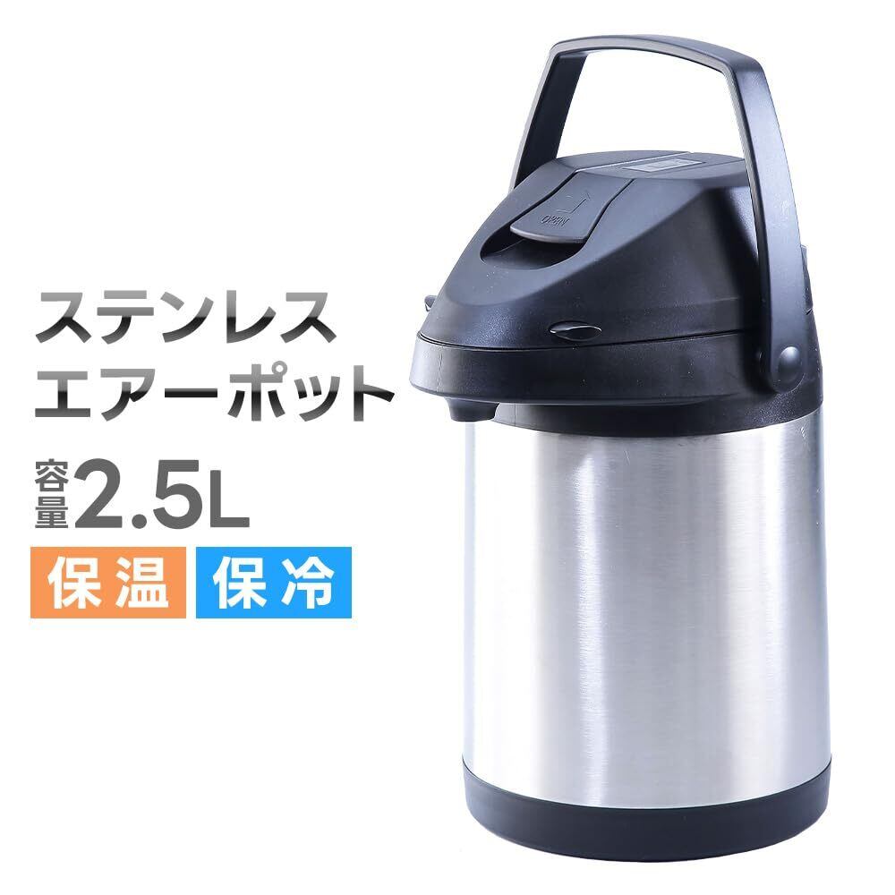 【特価商品】ビータ(Vita) レバー式エアーポット シルバー 幅18.5×奥行22×高さ37cm 容量2.5L 保冷 保温 電源不要 大きめ取手 セーフティロック 小さな力で楽々注げる