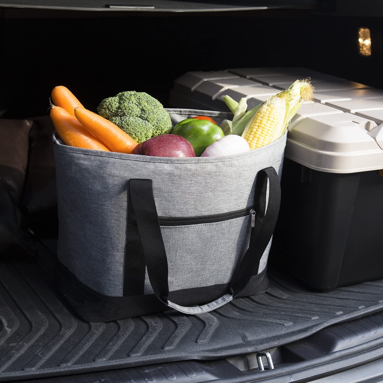 【在庫セール】RVSNQ 保冷バッグ 大容量 ジッパー付き ランチバッグ 折りたたみ式 エコバッグ 保温 バック 食品収納 軽量 多機能 保冷ランチトート 通勤、通学、桜鑑賞、旅行、買い物に適 (グレー)
