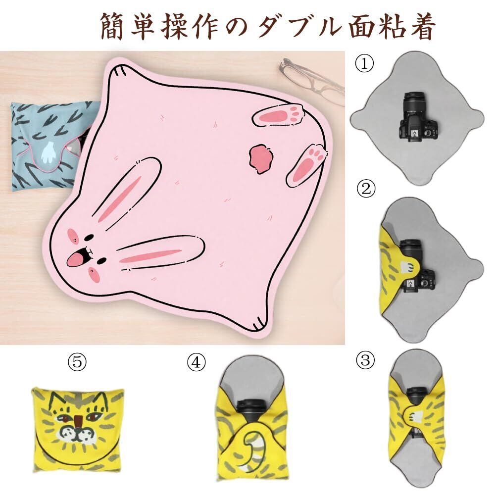 【特価セール】ランチクロス 巻くだけ保冷 くっつくクロス お弁当包み 保温 軽量 吸水 カメララップ くっつき ペタペタ おにぎりケース くっつきタオル マルチ 化粧ポーチ 60*60cm 動物柄 (ピンクウサギ)