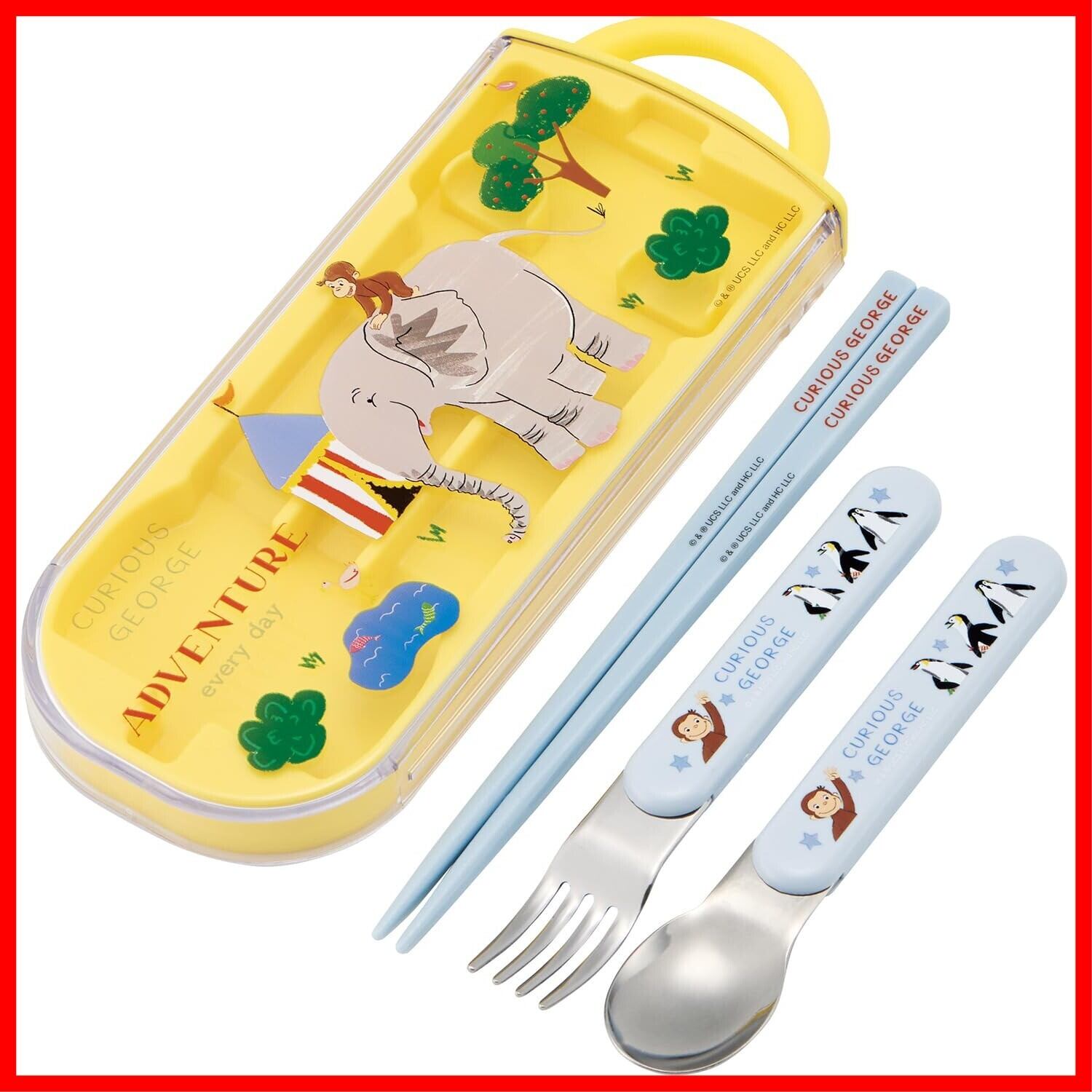【在庫セール】スケーター(Skater) 子供用 お弁当 トリオセット 箸 スプーン フォーク キッズ カトラリー 抗菌 加工 開けやすいスライド式 日本製 おさるのジョージ ZOO TACC2AG