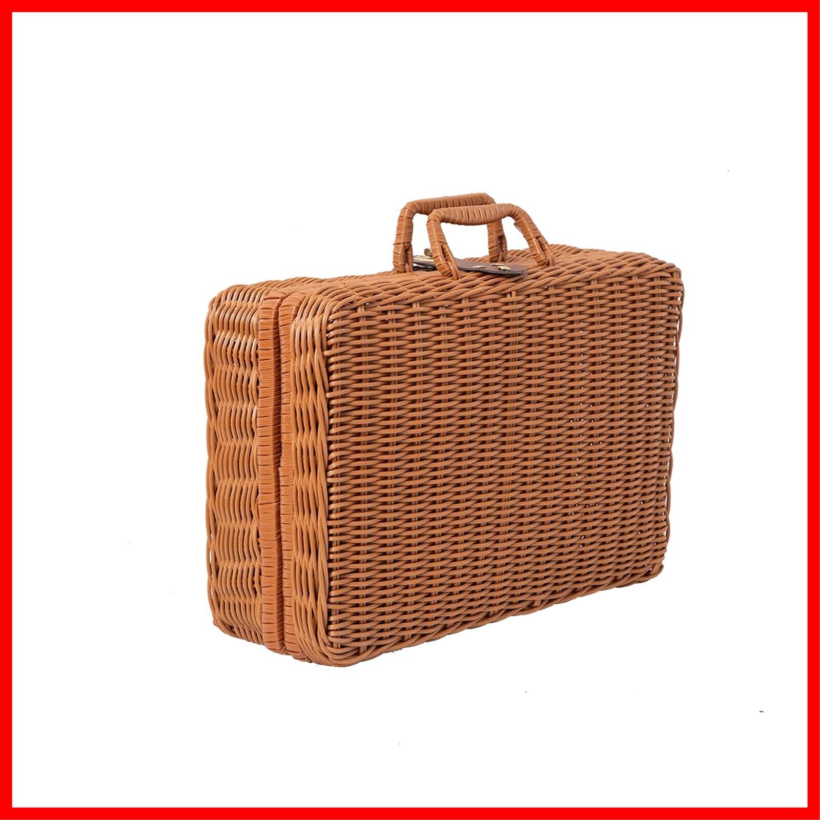 【数量限定】ピクニックバスケット、蓋付きポータブルバスケット、スーツケース、ハンドル付き籐バスケット(ブラウン、35x24x13 cm)