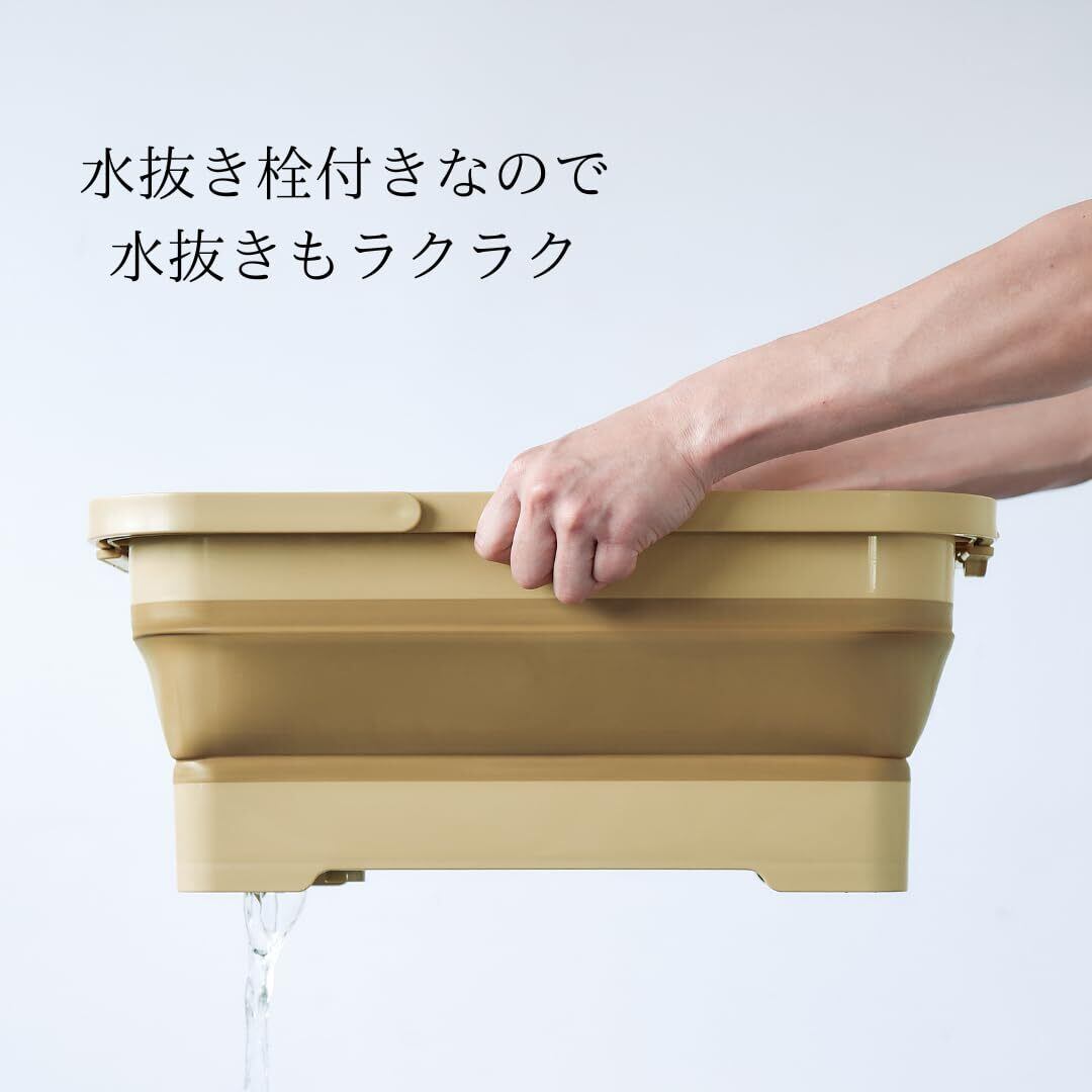 この15リットル容量のミラーゴは、ハンドル付きで持ち運びが簡単な折りたたみバスケットです。使用後は折りたたんでコンパクトに収納でき、場所を取りません。防災用品として、ネコちゃんのペットバス、カー用品、つけ置き洗い、清掃用品、ランドリーバスケット、買い物用バスケット、食器洗いなど、幅広い用途に対応します。 便利な水抜き栓が付いているため、水抜きもラクラクです。また、フック穴にヒモを通せば壁掛けも可能で、収納場所に困りません。簡単に開けて使えるデザインで、日常のさまざまなシーンで活躍する大容量のポータブルバスケットです。