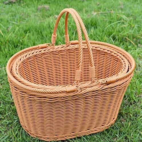 Drawihi ピクニック かご バスケット 籐かご 手編み かご 洗える 2つの取っ手付き フルーツバスケット 小物収納 オシャレ ナチュラル 小物入れ フルーツ/ワイン/調味料 卓上 インテリア キッチン収納 手編み 運動会 キャンプ 旅行 S/L選択可 (S+Lセット)