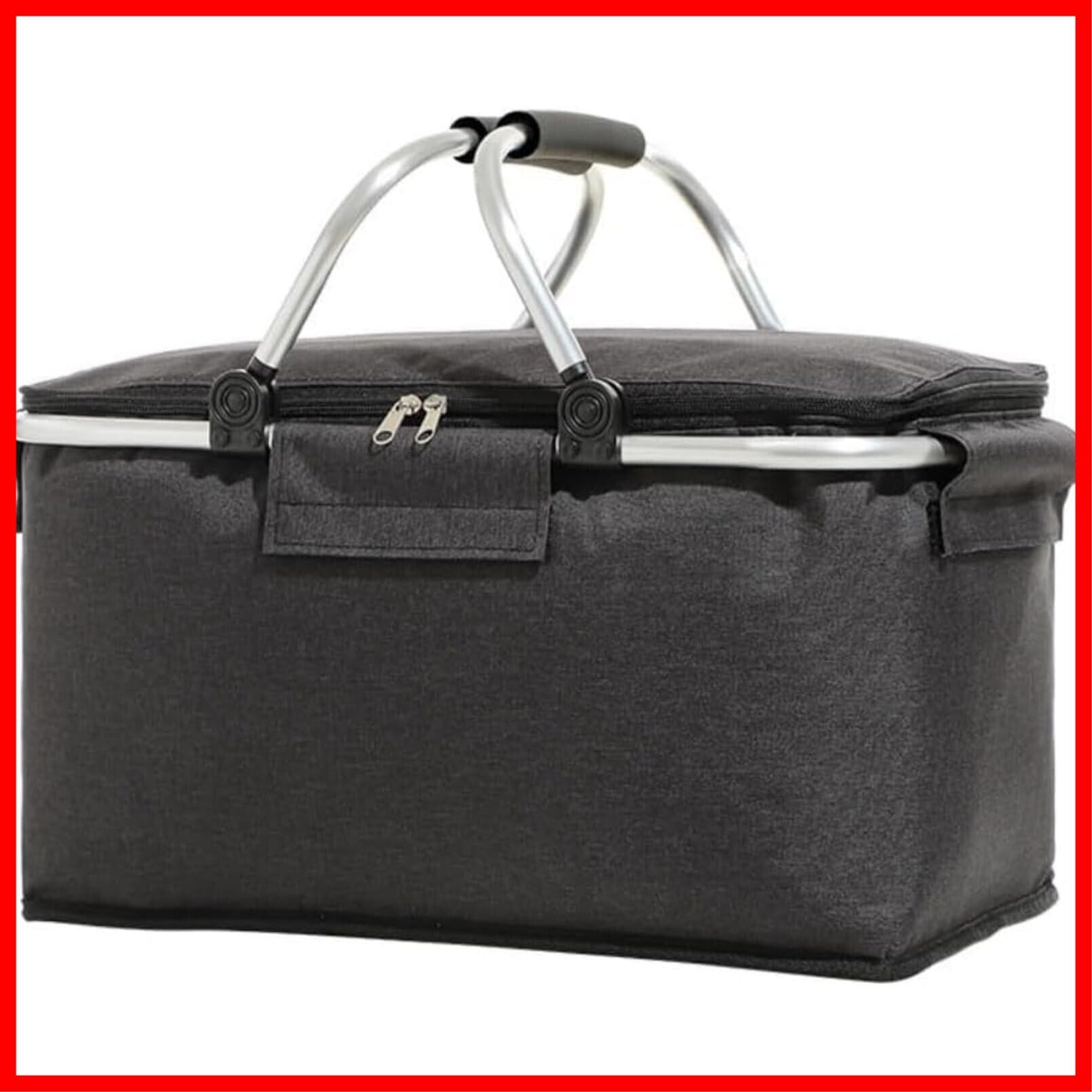 ピクニックバスケット 大容量 折りたたみ ピクニック キャンプバスケット 手提げ クーラーバスケット 折り畳み式クーラー クーラーバッグ 断熱 ブラック キャンプ 配達用 (ブラック)