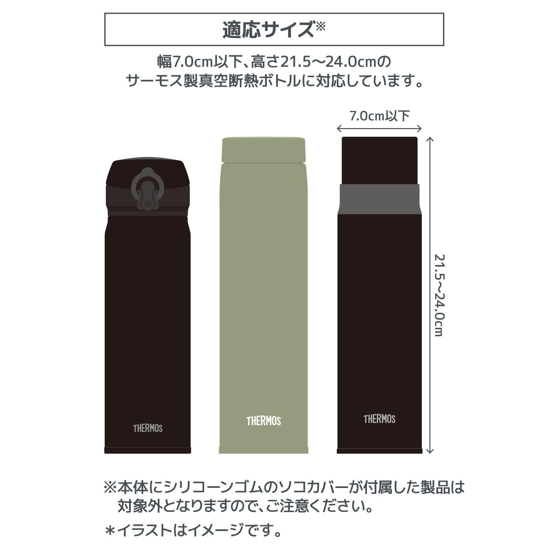 適応サイズ:高さ21.5cm~24cm、幅7cm以下のサーモス製真空断熱ボトルに対応。