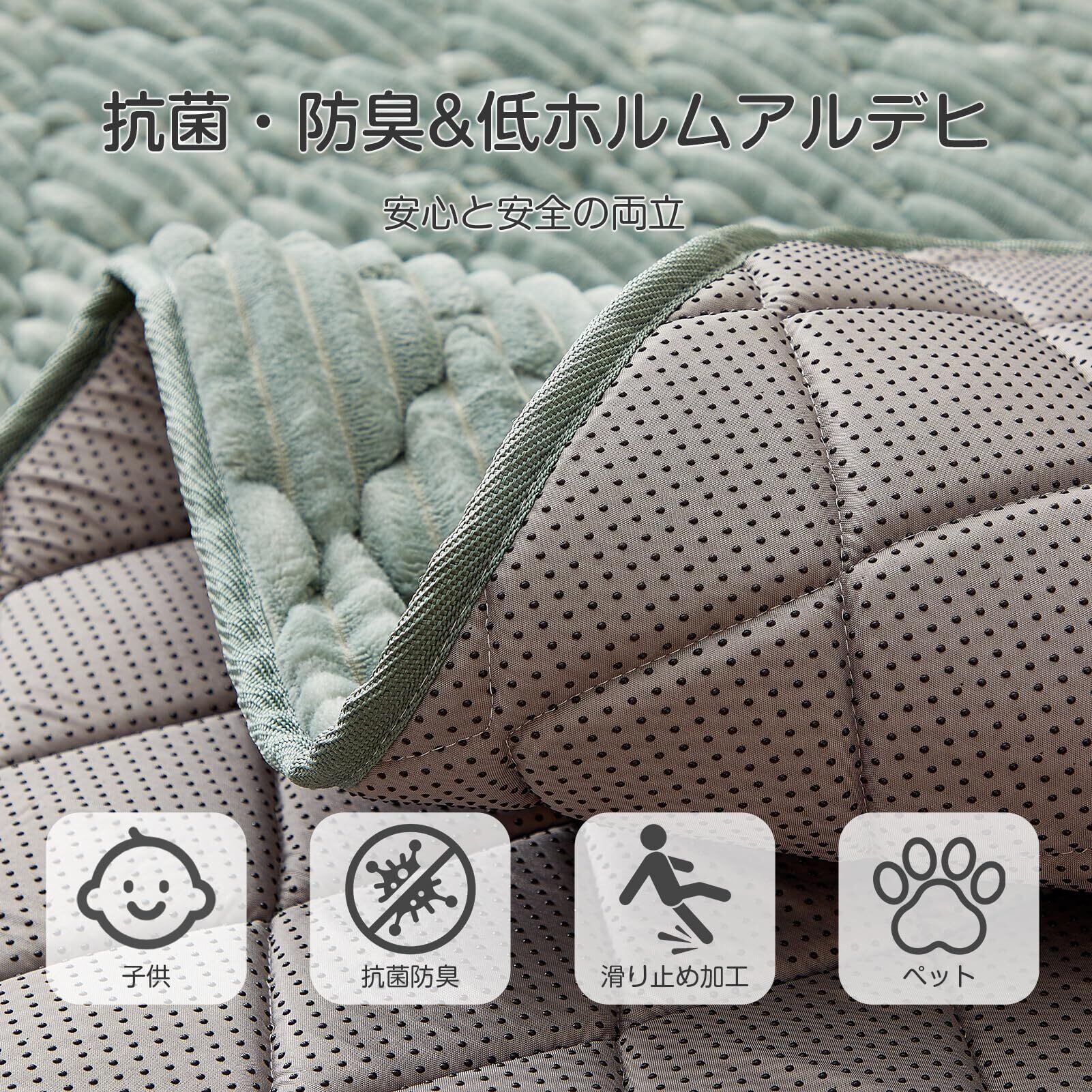 【在庫セール】CHOSHOME カーペット ラグ 極厚25mm ラグマット 2畳 絨毯 厚手 オールシーズン ラグ 滑り止め 防音 ふわっと手触り 撥水加工 北欧 洗える フランネルラグ 床暖房 ホットカーペット対応 無地 シンプル 防ダニ 防臭 ラグ 190×190cm グレー/グリーン | Cherry Blossoms
