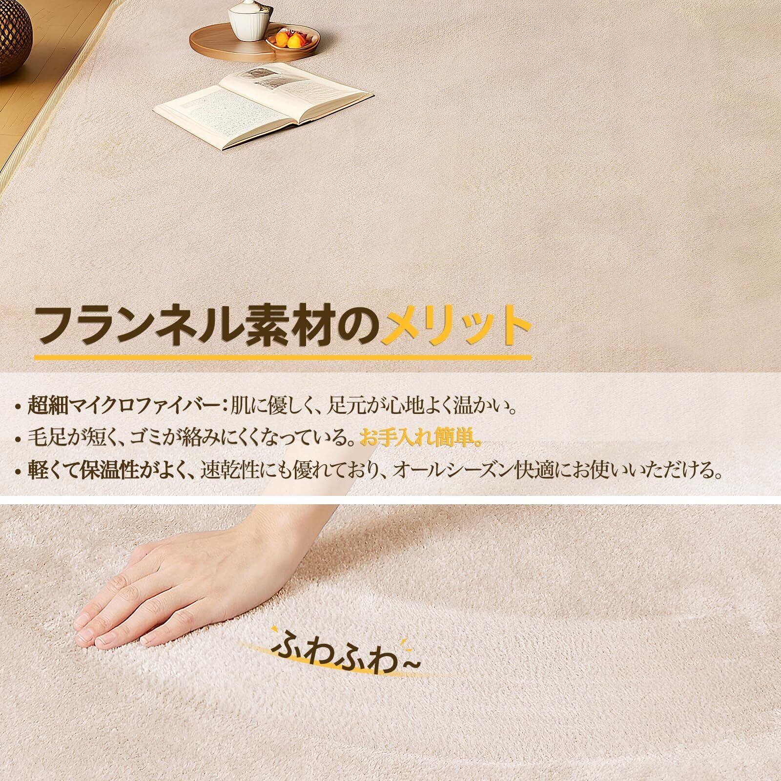 【フランネルラグ-優れた肌触り】極細繊維で作られたフランネル素材のラグマットはソフトでしなやか、滑らかな感触を実現します。肌ざわり良いし、短毛タイプのラグマットなので、ネコや犬の毛が付いても、掃除機で簡単に取れます。