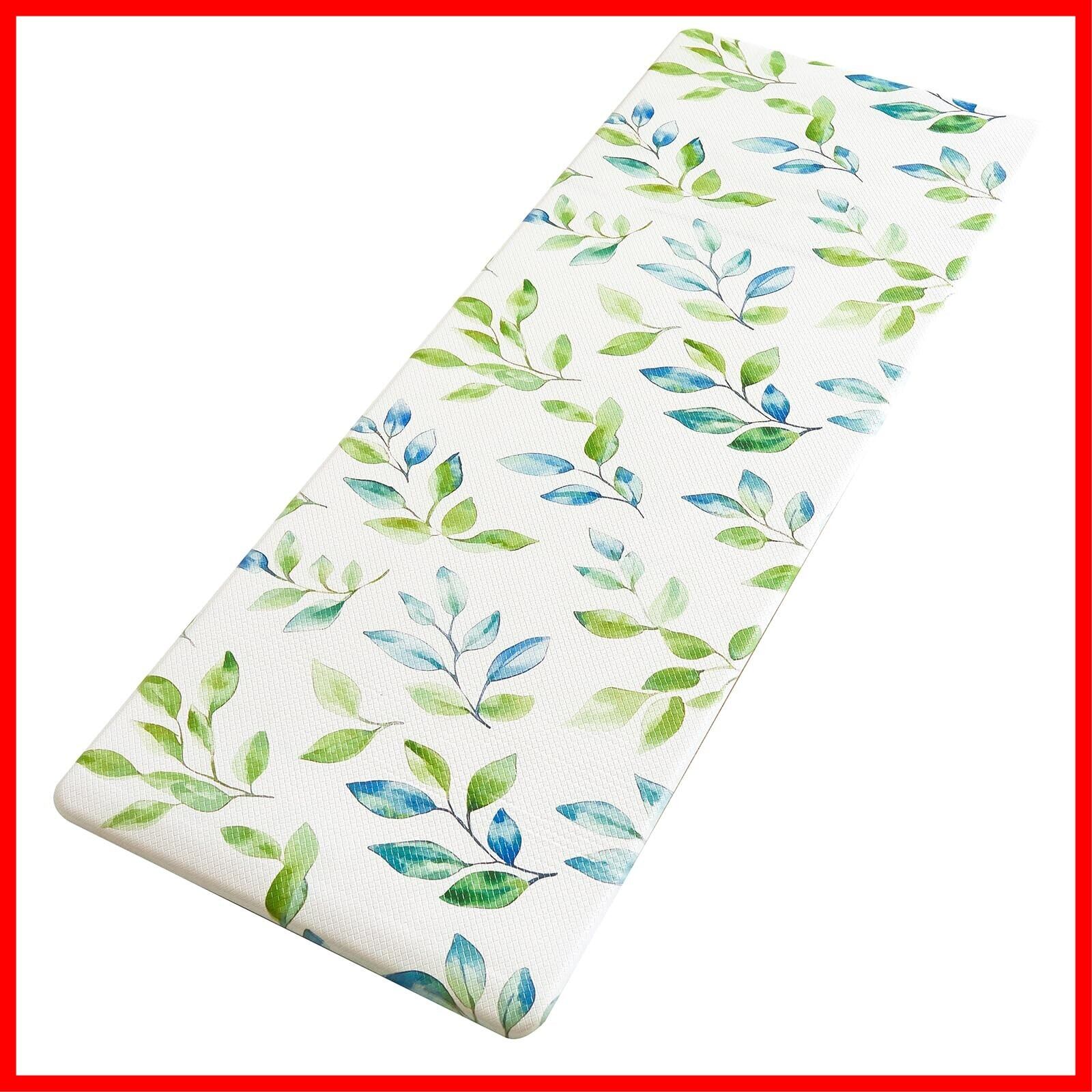 【特価商品】Koniroom キッチンマット 水彩グリーンリーフ柄 45×240cm 厚さ10mm 北欧風 ナチュラル 滑り止め 拭ける 防水 防汚 防炎 台所マット 抗菌防臭 PVC素材 | Cherry Blossoms