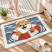 SYitong 玄関マット 浴室マット バスマット 吸水 滑り止め 防カビ 洗えるマット 可愛い おしゃれ ネコ柄 犬柄 廊下 洗面台 キッチン 吸湿性吸水性 柔らかい 厚手おしゃれマット 45×75cm (スイミング柴犬, 40×60cm)