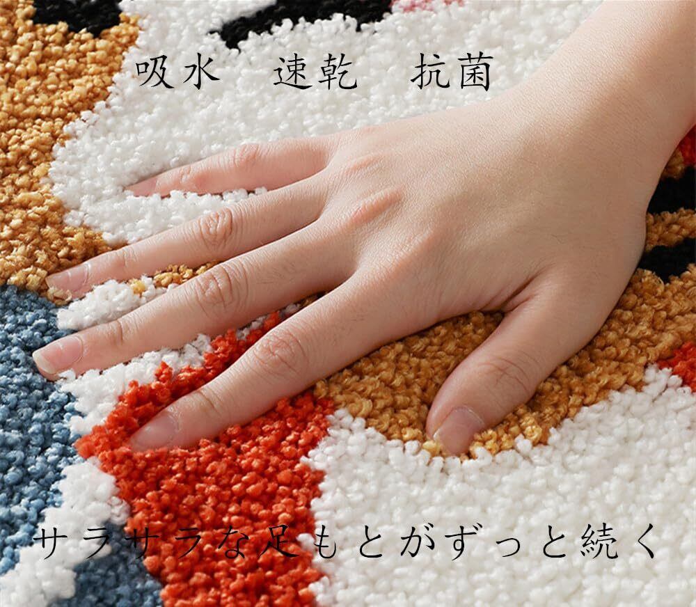 【素材構成】表面/ポリエステル繊維 反面/ラテックス。環境に優しい材料を使用して、踏み心地もよし、柔軟性、吸水性、耐磨耗性、抗菌防臭加工されて、綿毛が濃密で、色落ちなし、毛も落としにくいです。