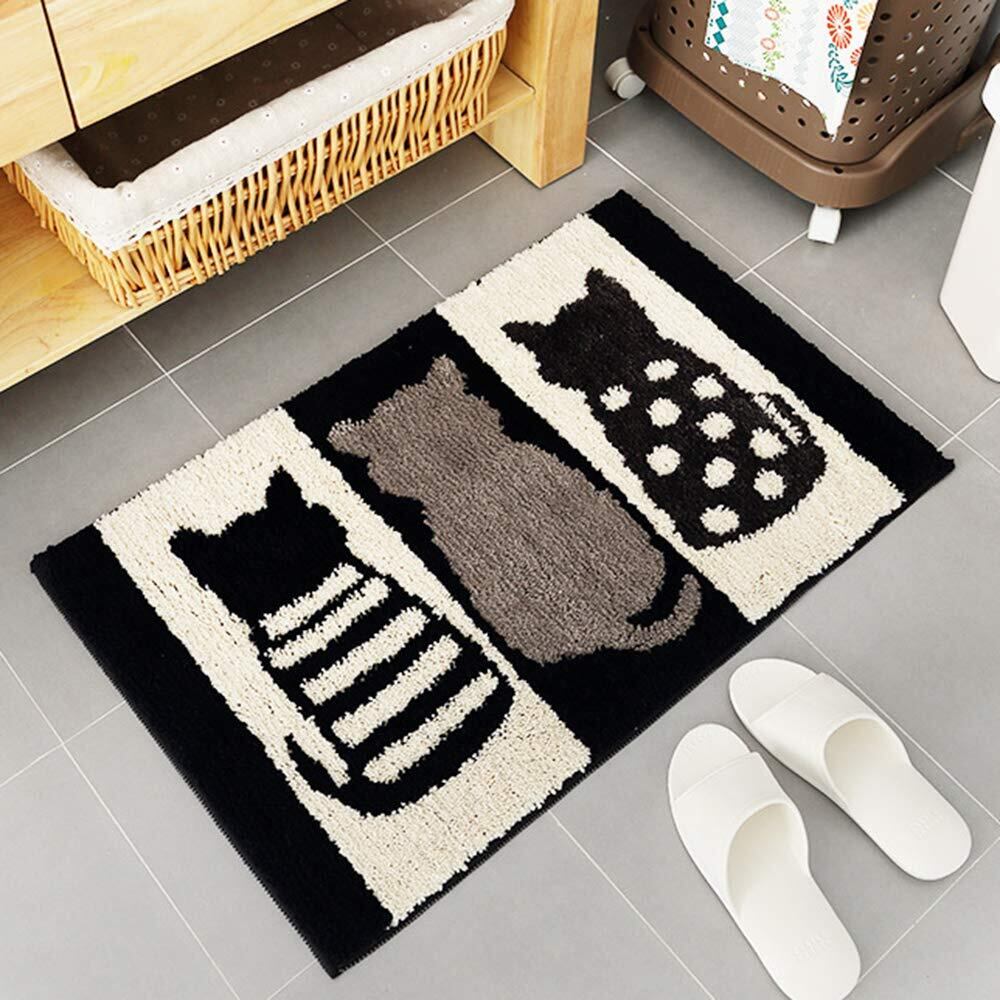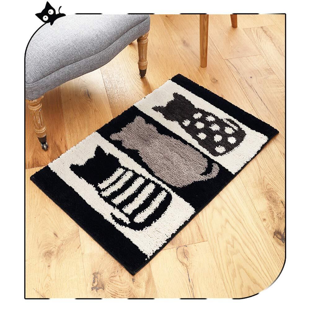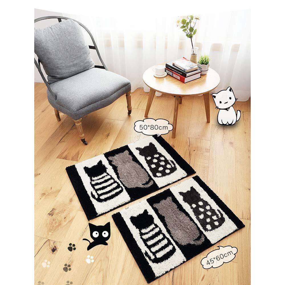 【在庫処分】玄関マットSYitong バスマット浴槽マット 屋内 室内 用 滑り止め 付き泥落とし ふわふわ 洗える 吸水 柔らかい 折りたたみ可能45×65cm 50×80cm モノクロ (猫柄, 50×80cm) | Cherry Blossoms