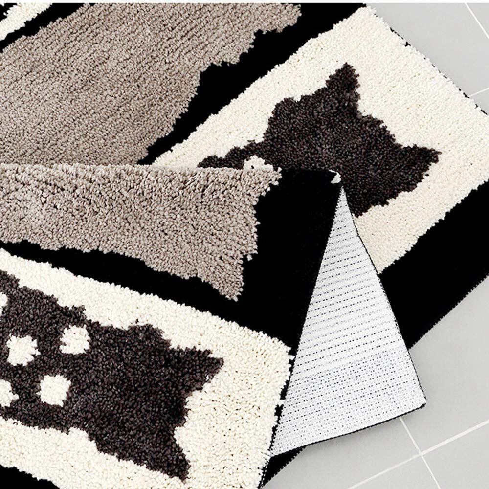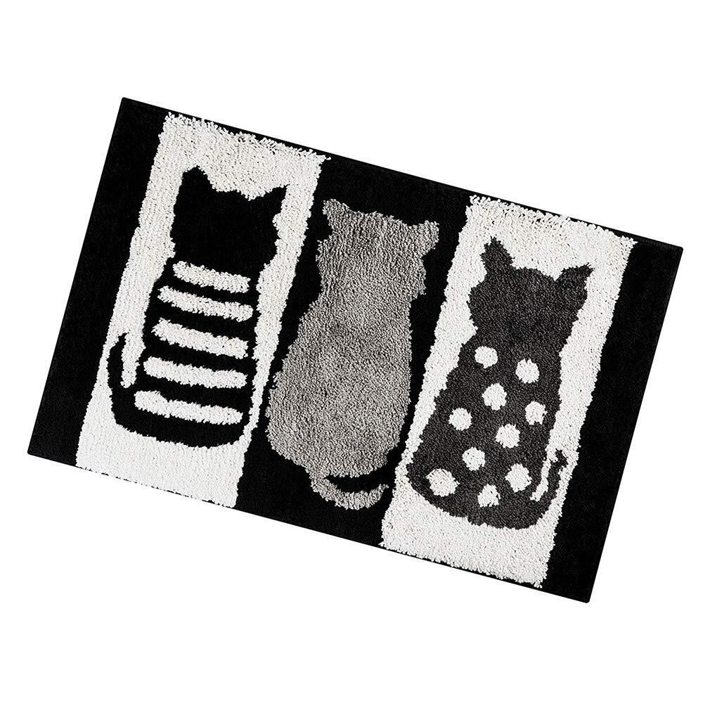 【在庫処分】玄関マットSYitong バスマット浴槽マット 屋内 室内 用 滑り止め 付き泥落とし ふわふわ 洗える 吸水 柔らかい 折りたたみ可能45×65cm 50×80cm モノクロ (猫柄, 50×80cm)