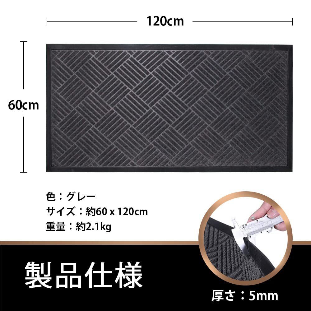 【製品仕様】カラー:グレー、サイズ:約60x120cm、重量:約2.1kg、素材:ポリプロピレン(裏地:合成ゴム)