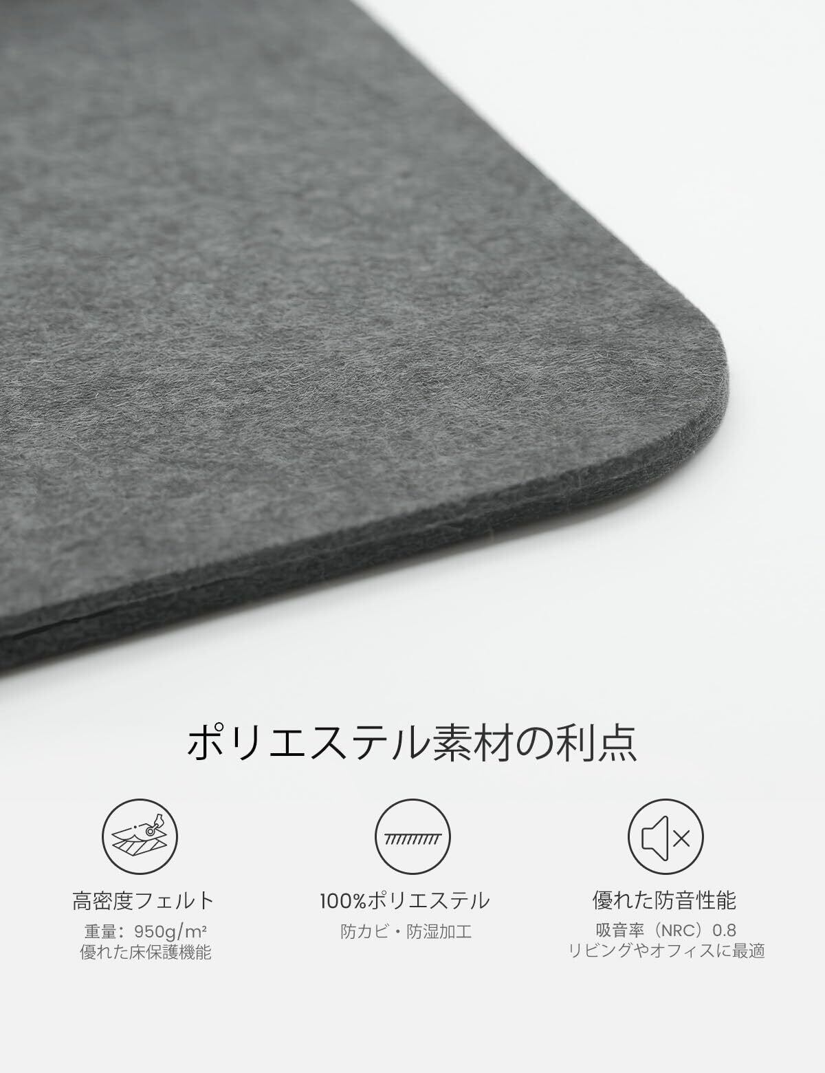 【防音効果】 フェルト材質は自然に音を吸収し、周囲の残響音やオフィスチェアの稼働音を低減します。