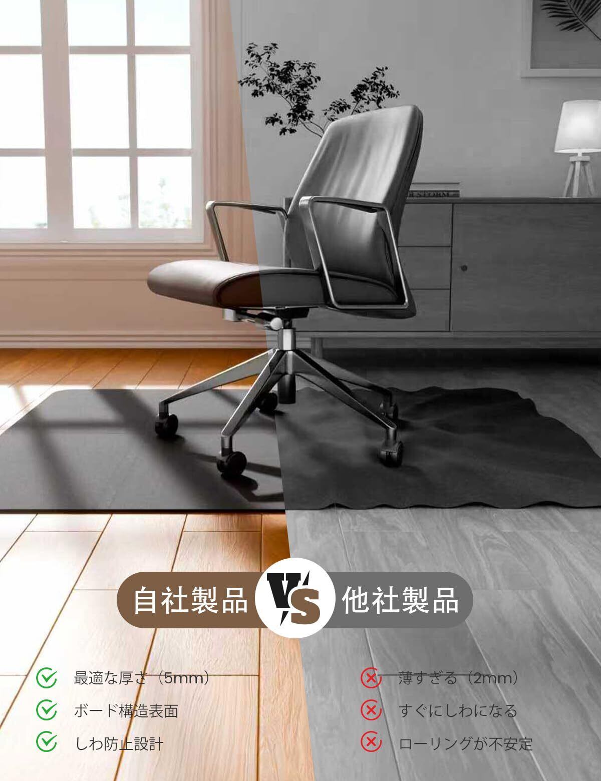 このフロアマットは防音効果に優れ、椅子の移動による音を減少させます。オフィスや在宅勤務の際にも、周囲を気にせずに集中できる環境を提供します。静かな作業空間を実現し、快適な時間を過ごせるでしょう。