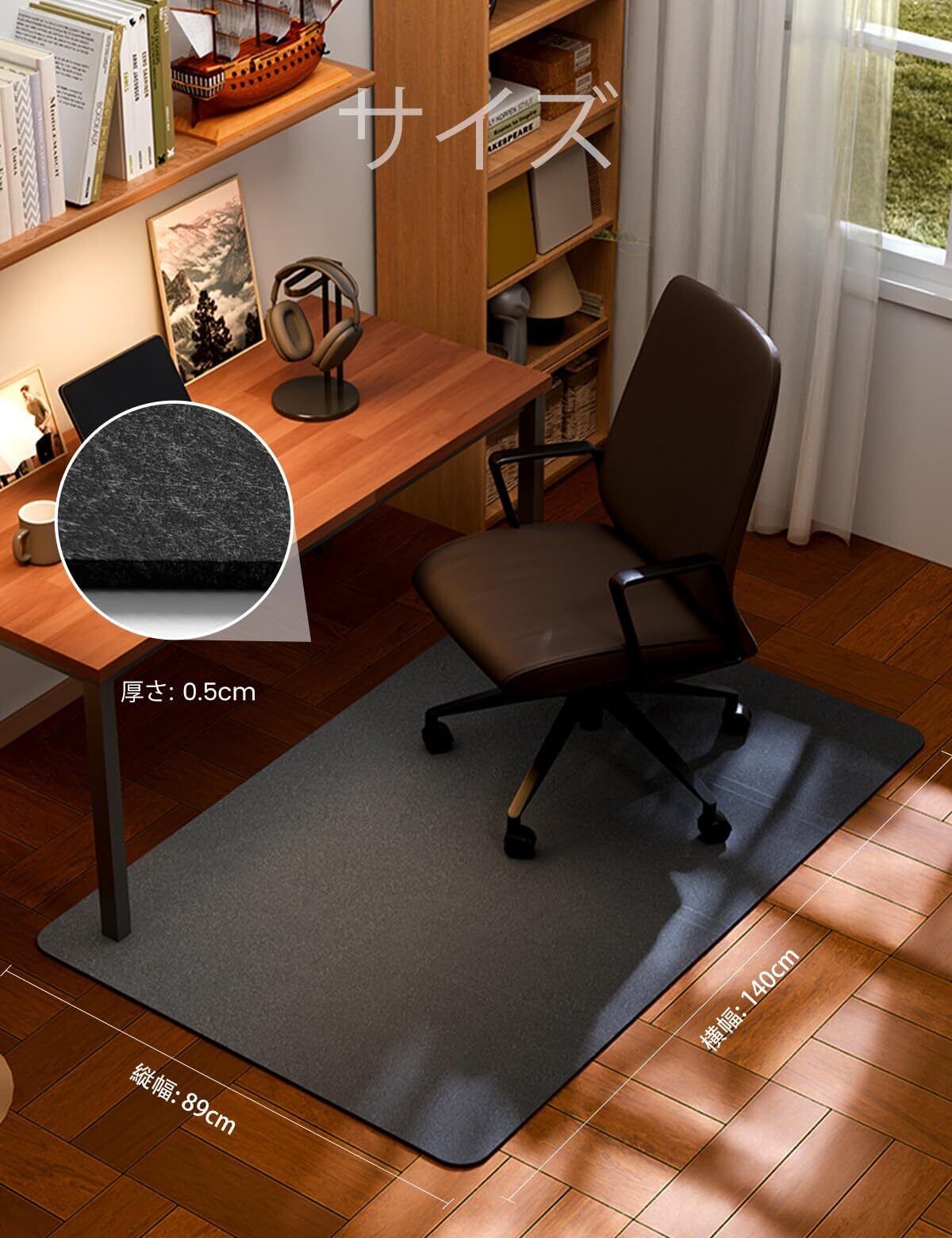【重厚フェルトチェアマット】 床保護マットのために特別に設計された 89cm x 140cm の大型マットです。5mmの厚みが優れた重量支撑性を発揮し、オフィスチェアのキャスターがカーペットやフローリングを傷つけるのを効果的に防止します。