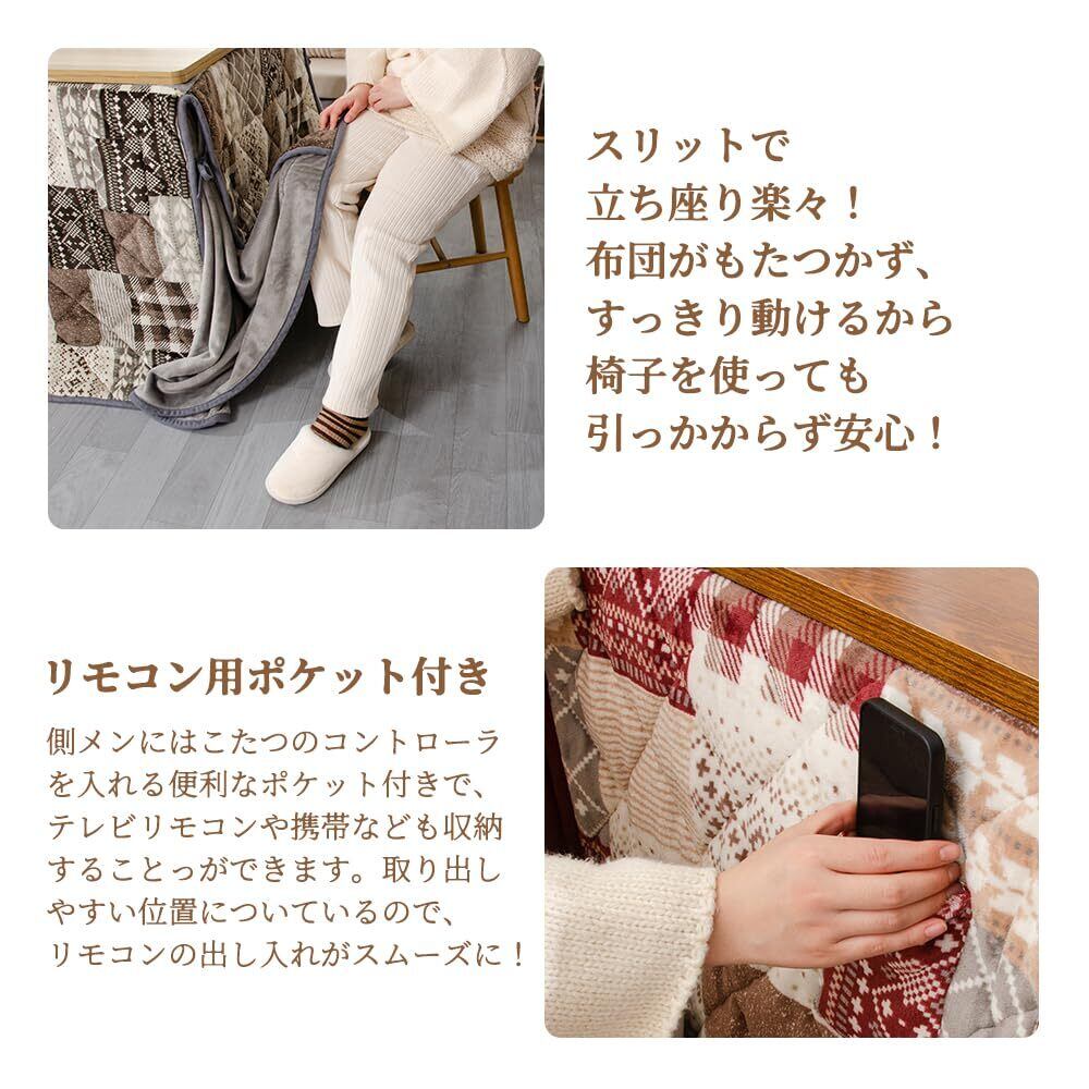 【楽しめる触り心地】表地・裏地とも、フランネル生地生地を使用しており、ふんわり柔らかな肌触り。北欧テイストやナチュラルなインテリアとも相性抜群。薄掛けタイプはこたつ周りをすっきり見せてくれ、こたつの中をぽかぽか暖めてやさしく包み込んでくれます。