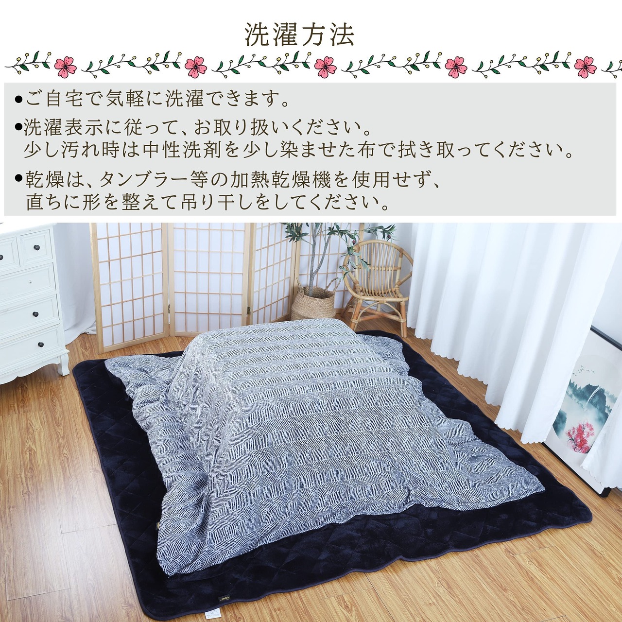 このカバーは、マイクロファイバーを使用しており、こたつの熱をしっかりと伝えます。寒い冬の日でも、温かさを逃がさず、柔らかな肌触りで心地よく包み込みます。リバーシブル機能により、気分やインテリアに合わせて使い分けることができるのも嬉しいポイントです。