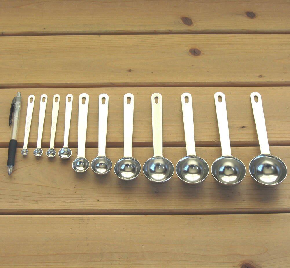 サイズバリエーションは0.1ccから30ccまで全13種類と、調理で必要な計量を網羅している