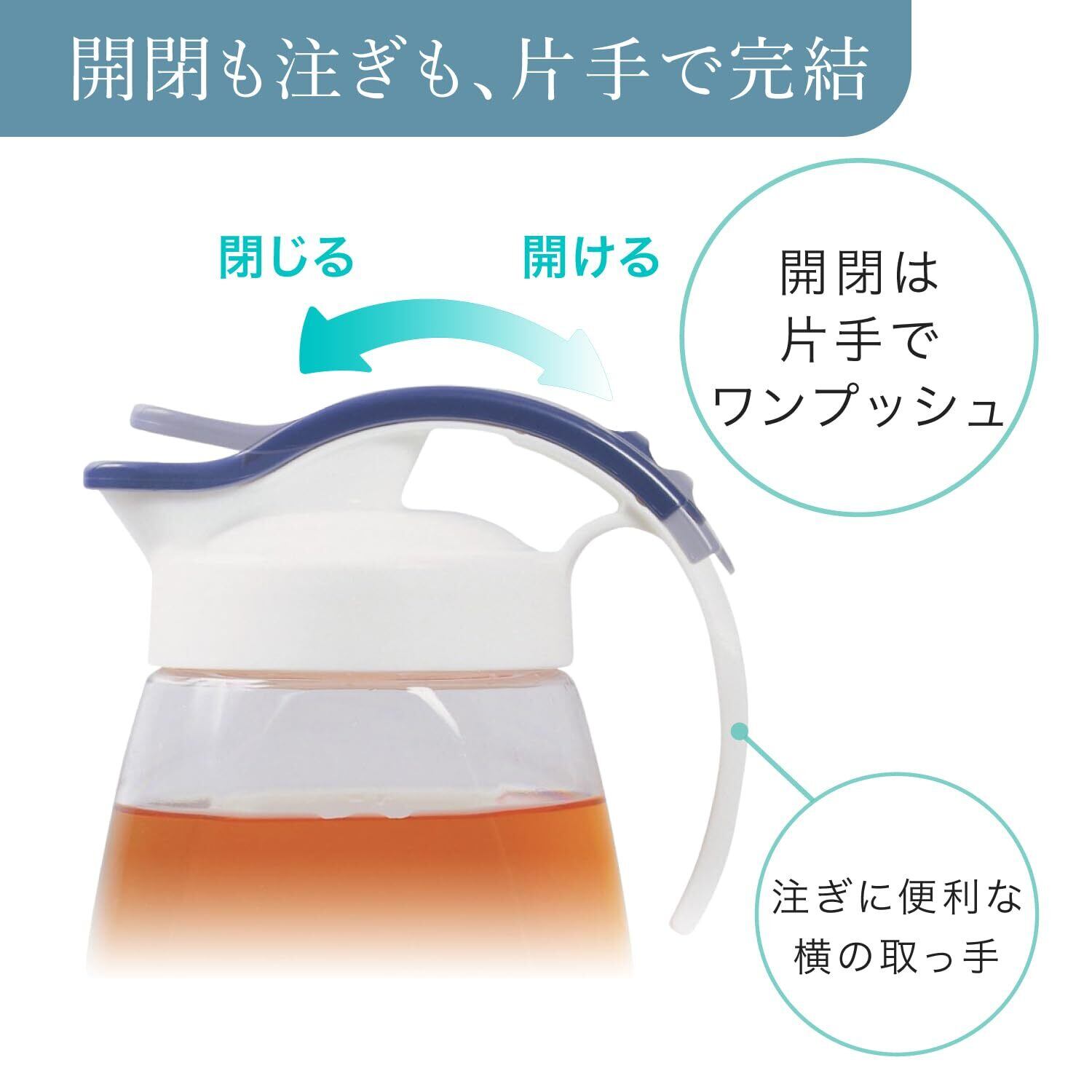 スライド式の蓋を採用しており、一手で簡単に開閉できます。飲み物を注ぐ際もストレスなくスムーズに行え、日常の食卓でも重宝するデザインです。