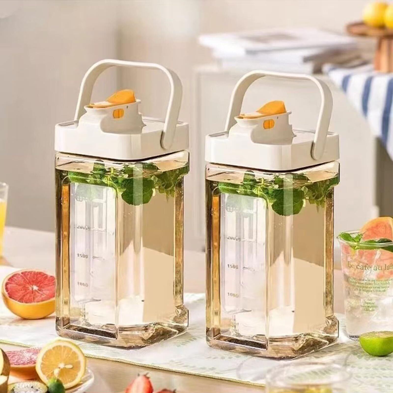 【横向き使用】ピッチャー 横置き ボトル口のユニークな横向きデザインにより、冷蔵庫や棚に簡単に保管でき、ケトルを緩めずにワンクリックで水を集めることができます。