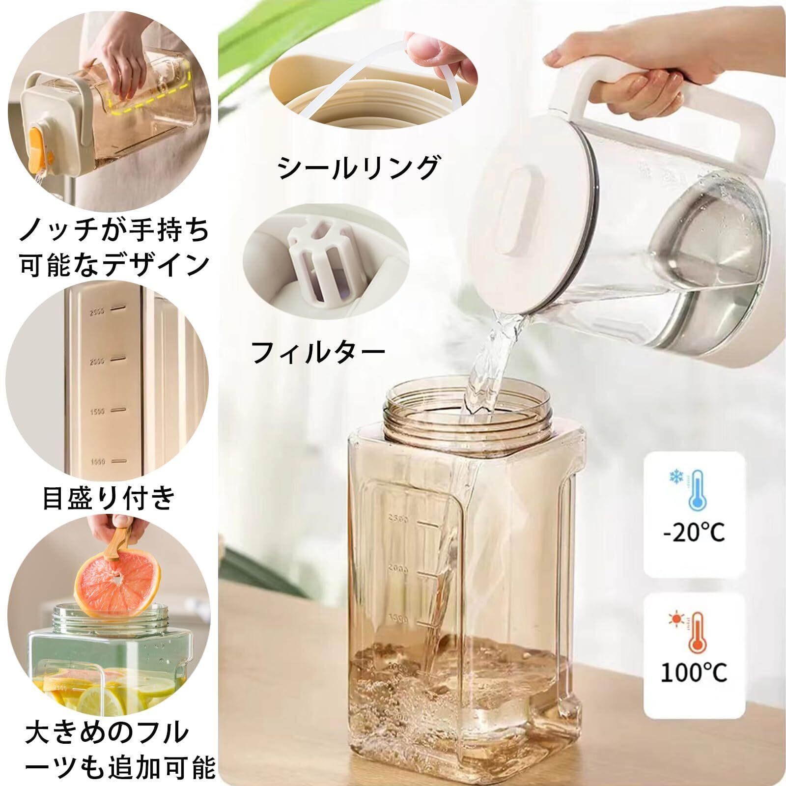 【フィルタリング・漏れ防止設計】麦茶ポット 蓋の内側にシールリングの設計があり、360°密閉を実現でき、漏れることなく屋外でも使用できます。 バッグやポーチに入れても安心です。
