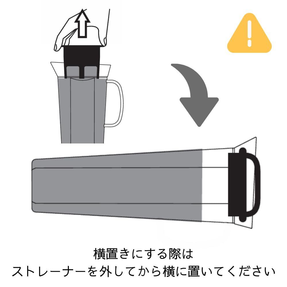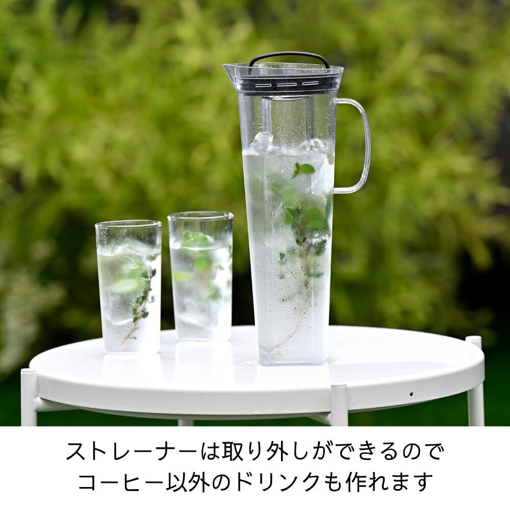【取り外し可能なストレーナー】水出しコーヒーが作れるストレーナーは取り外しが可能です。コーヒーを入れて、冷蔵庫でじっくり抽出することはもちろんのこと、ストレーナーを外して夏の暑い日にぴったりな、デトックスウォーターも手軽に楽しむことができます。