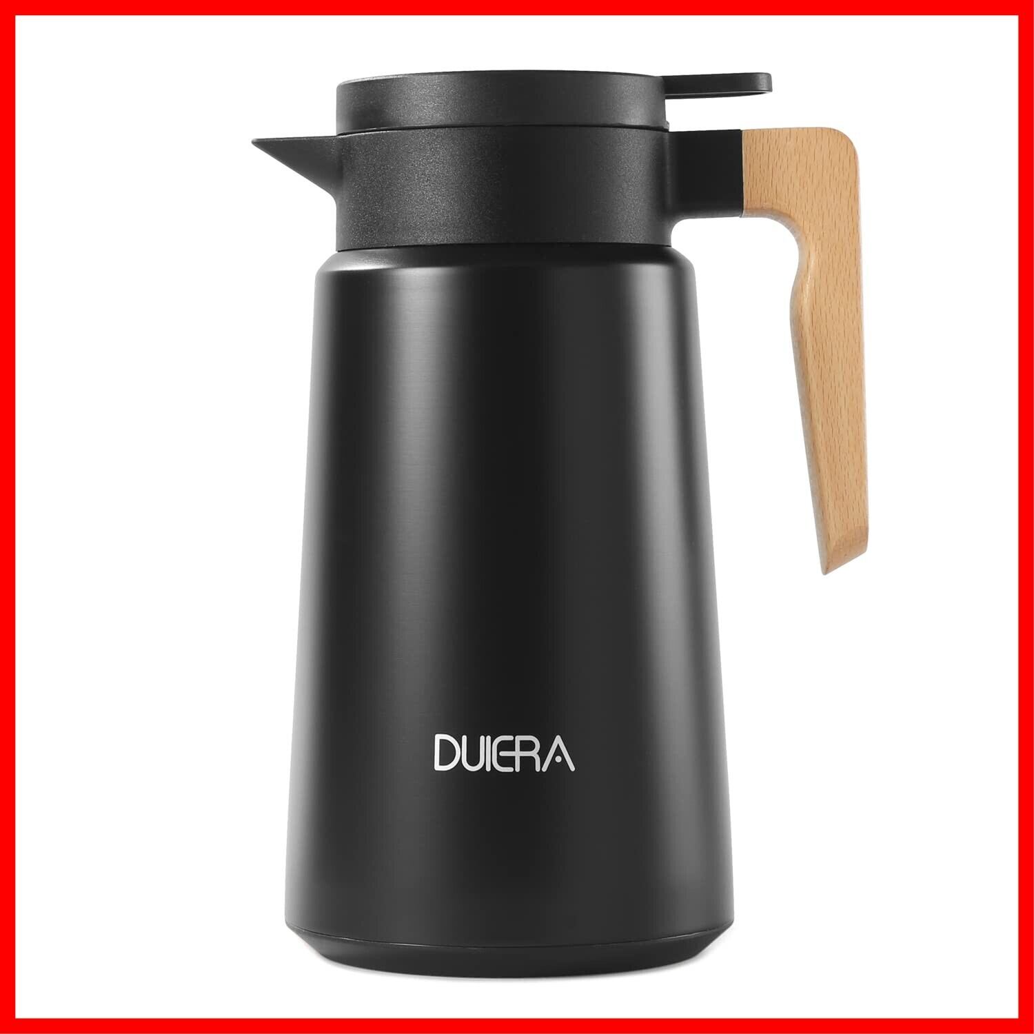 DUIERA1.8リットル魔法瓶ポット保温保冷ポット1800mlポットおしゃれなポットステンレスティーポット保冷ティーポット卓上ポット木製のハンドルと蓋付き、黒