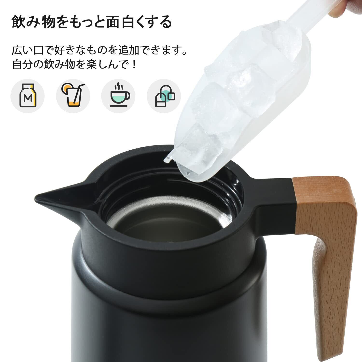 【在庫セール】DUIERA1.8リットル魔法瓶ポット保温保冷ポット1800mlポットおしゃれなポットステンレスティーポット保冷ティーポット卓上ポット木製のハンドルと蓋付き、黒 | Cherry Blossoms