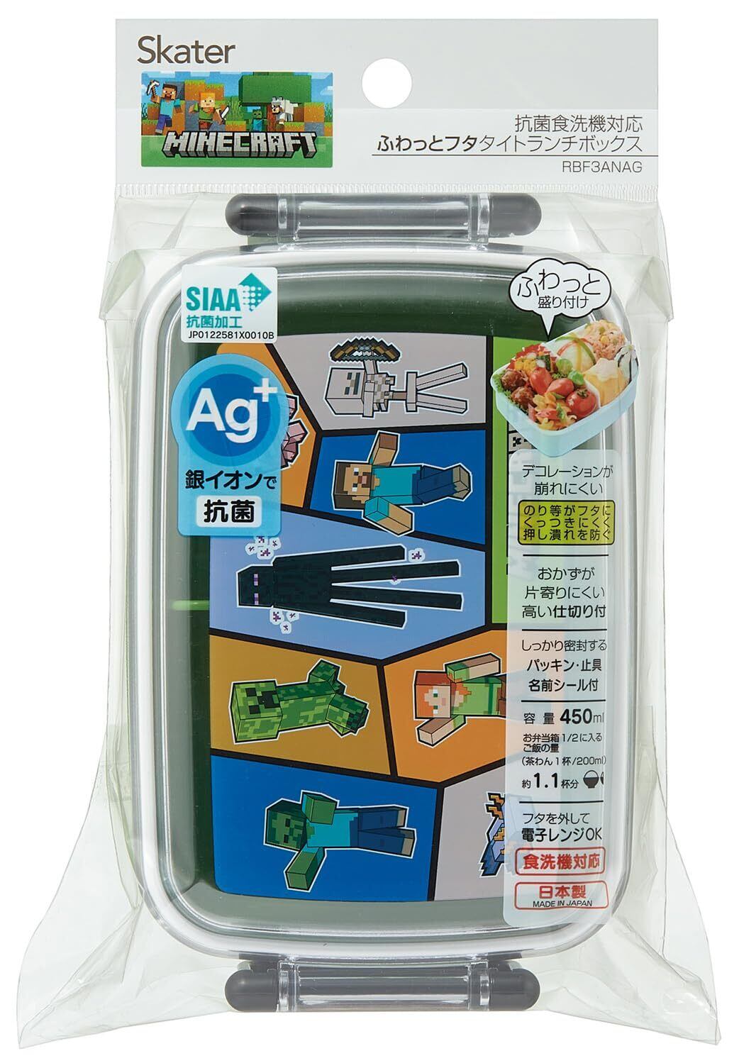 【特価商品】【大人気のキャラクター】スケーター(Skater) 子供用 お弁当箱 1段 450ml ドーム型 抗菌 日本製 マインクラフト 25 Minecraft 男の子 RBF3ANAG