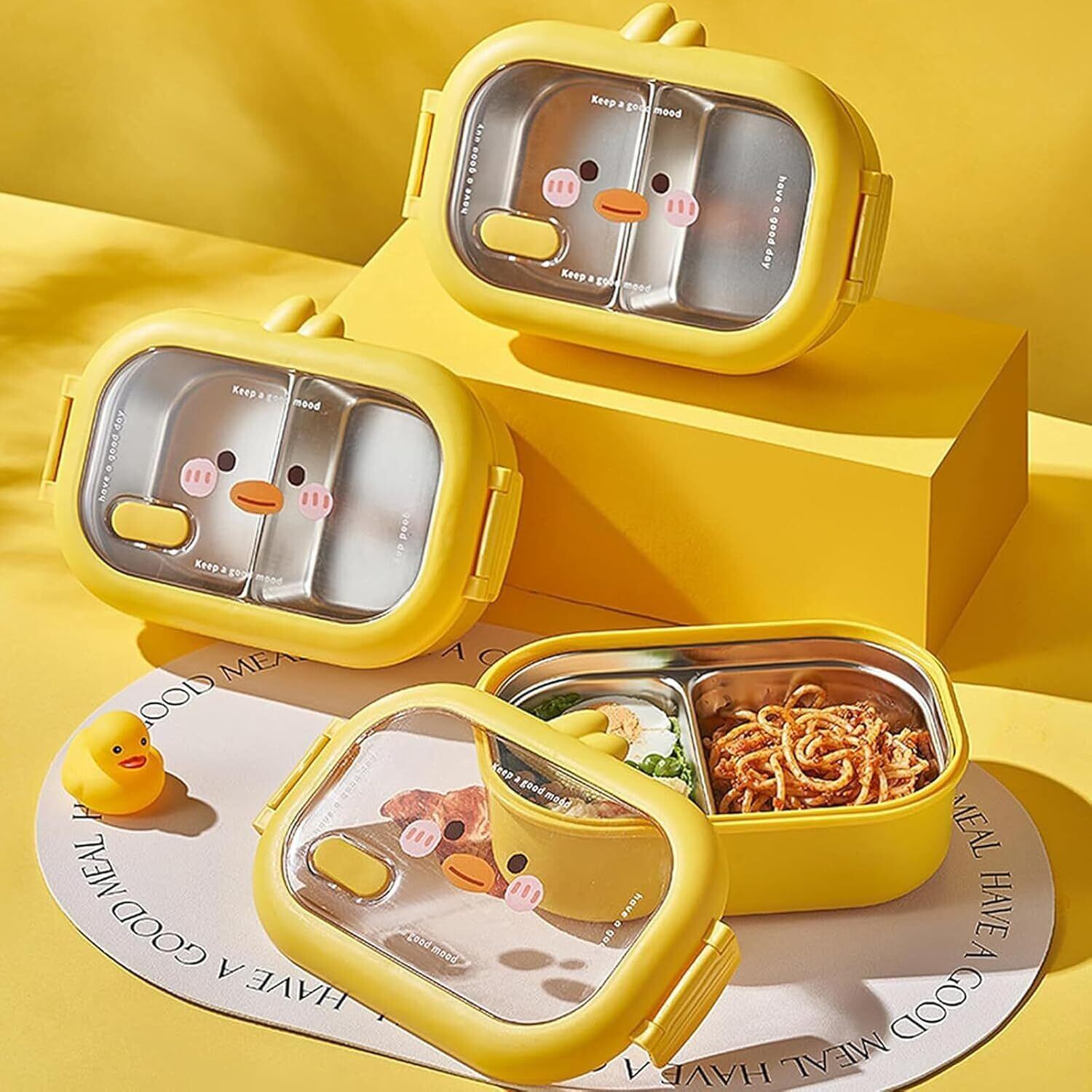 【在庫処分】お弁当箱 弁当箱 保温 1段 2 グリッド ランチボックス ステンレス鋼 便当盒 弁当 大容量 1000ml 保温 ランチボックス お弁当用 小さなアヒル べんとう箱 サラダ 弁当箱 ロック式 子供 男性 女性 保存容器 (A)