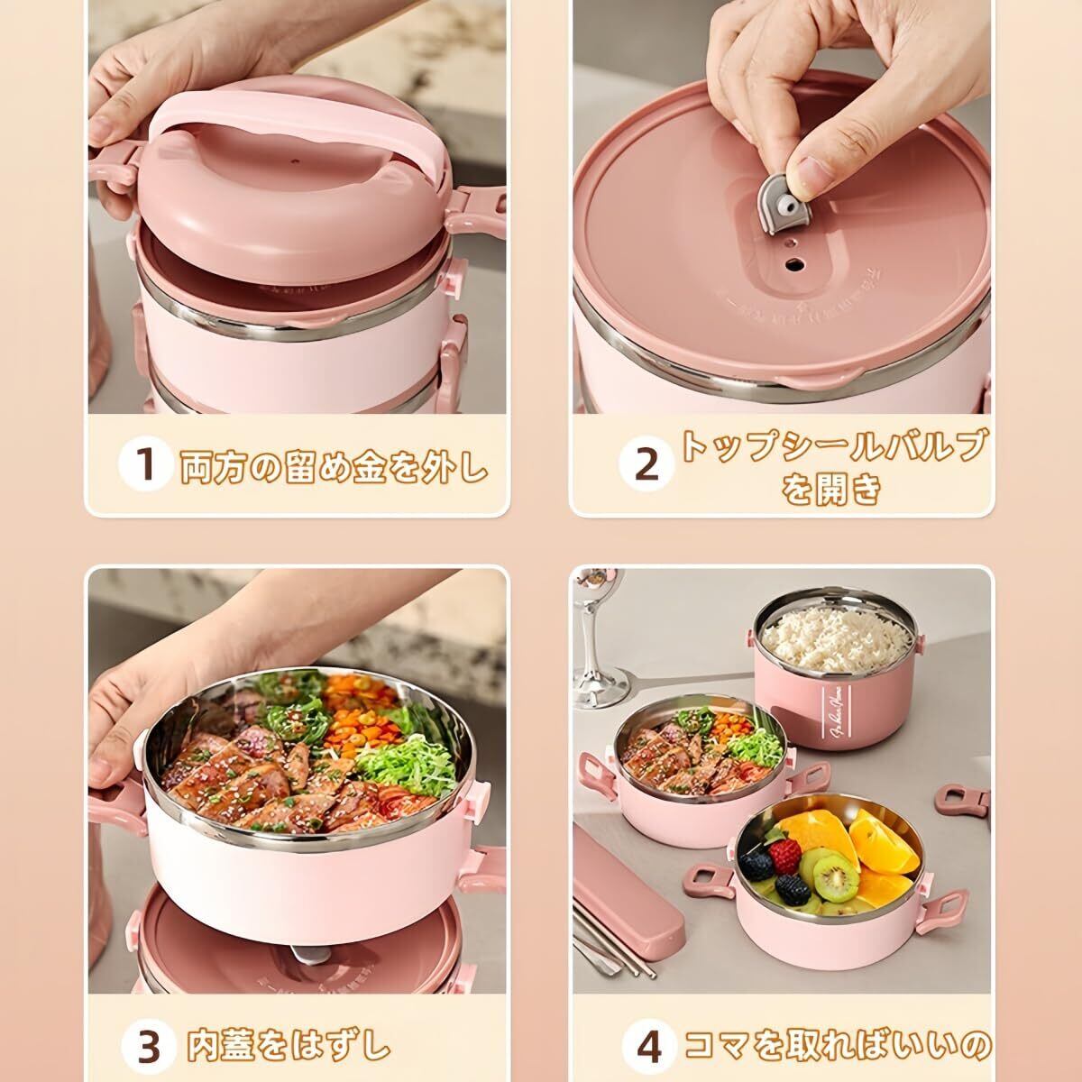 【高品質で確実な素材】:素材:材質:外側: 高級プラスチック、内部: 食品級の優質ステンレス。高品質の素材で作られたお弁当箱は、無毒無害で環境にもやさしいです。更に安全で健康、シンプルで実用的です。