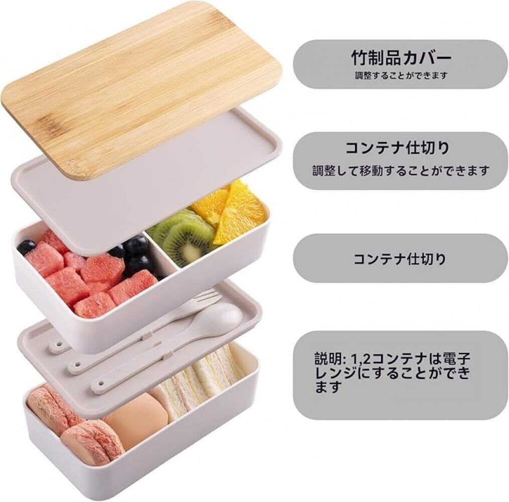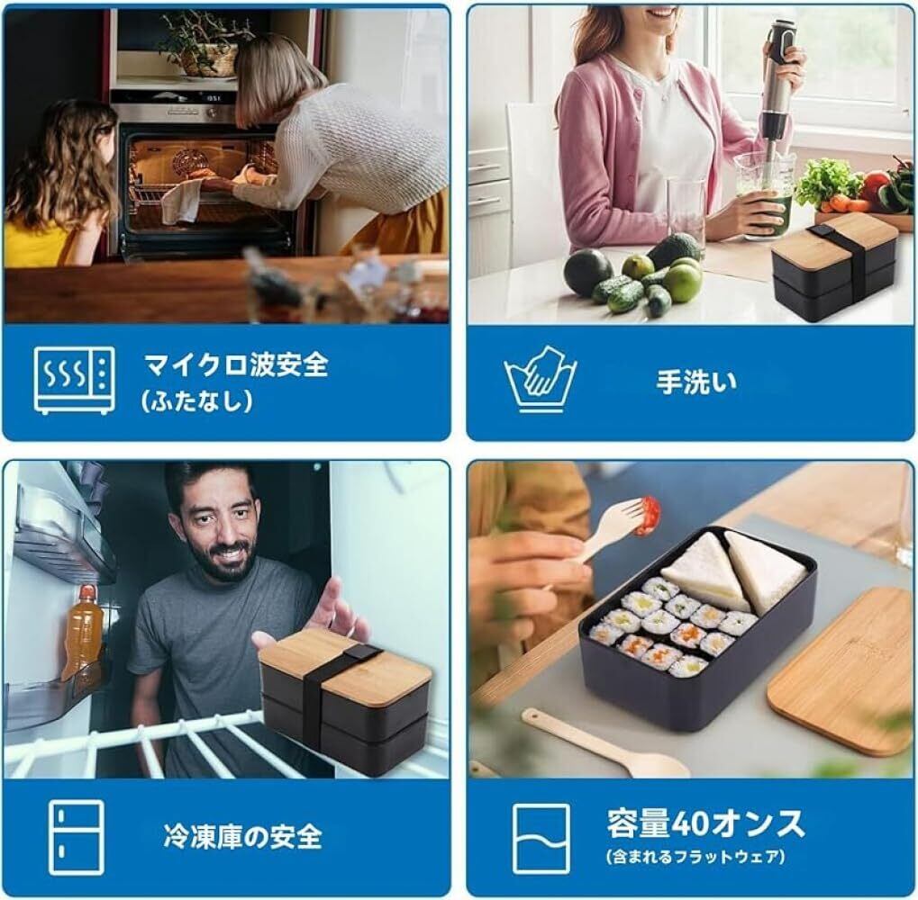 大容量 2 段構造:1200ml 大容量で男女の食事ニーズに対応、2 段仕切りで主食とおかずを分離収納し、風味混ざりを防ぐ。