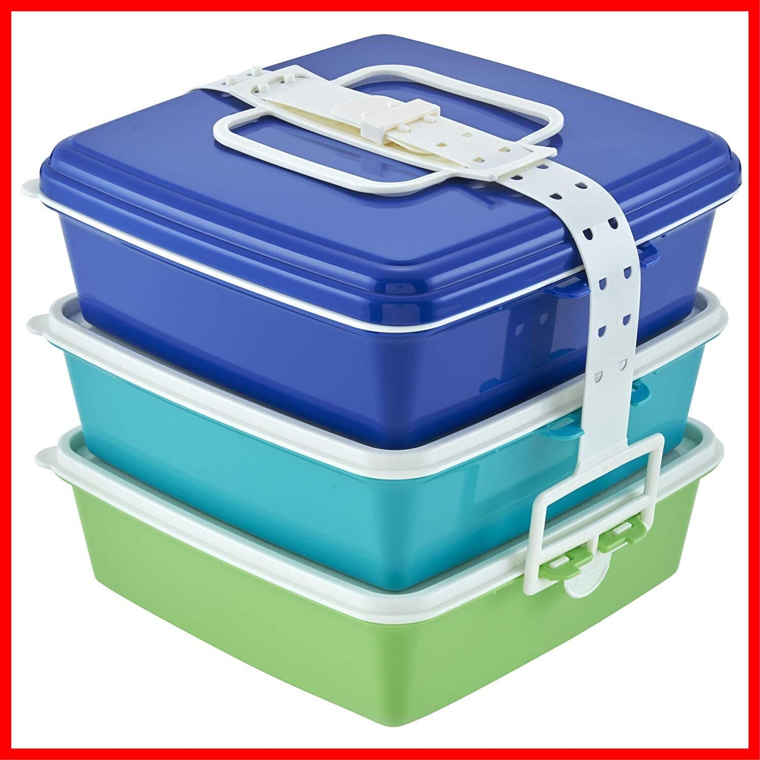 【数量限定】パルマート(Palmart) 大型弁当箱 blue 大 スタック式ピクニックケース角型3段 Colors(カラーズ) 4066