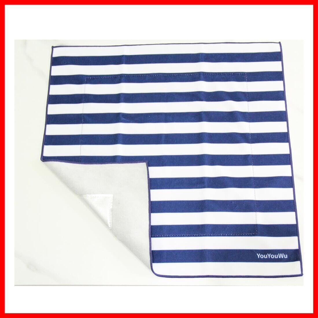 【特価商品】YouYouWu 巻くだけ保冷クロス ピタッとくっつく保冷温マルチクロス ピタクロ お弁当袋 保冷バッグ 結ばないランチクロス おしゃれ 可愛い ペットボトルカバー 傘袋 横42×縦42cm (ネイビー, ストライプ)