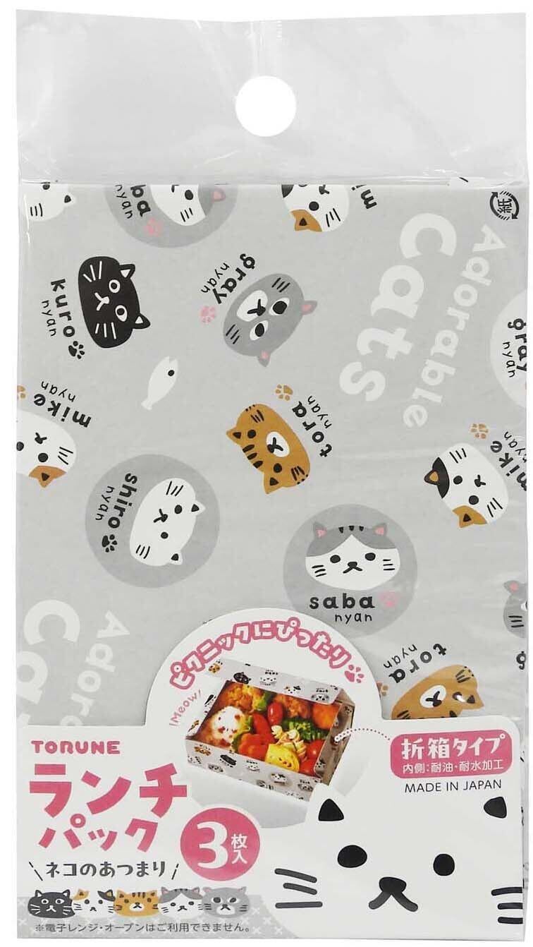 【在庫処分】トルネ ランチパック ネコのあつまり 3枚入 折り箱タイプ 奥行10×幅15×高さ5cm P-3711 日本製