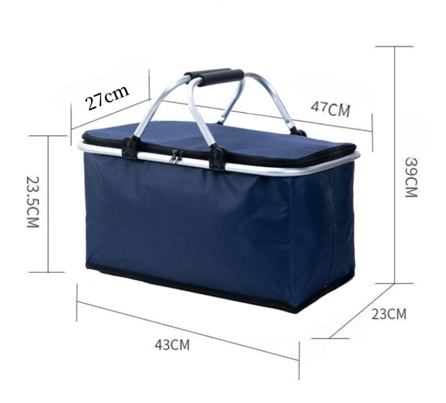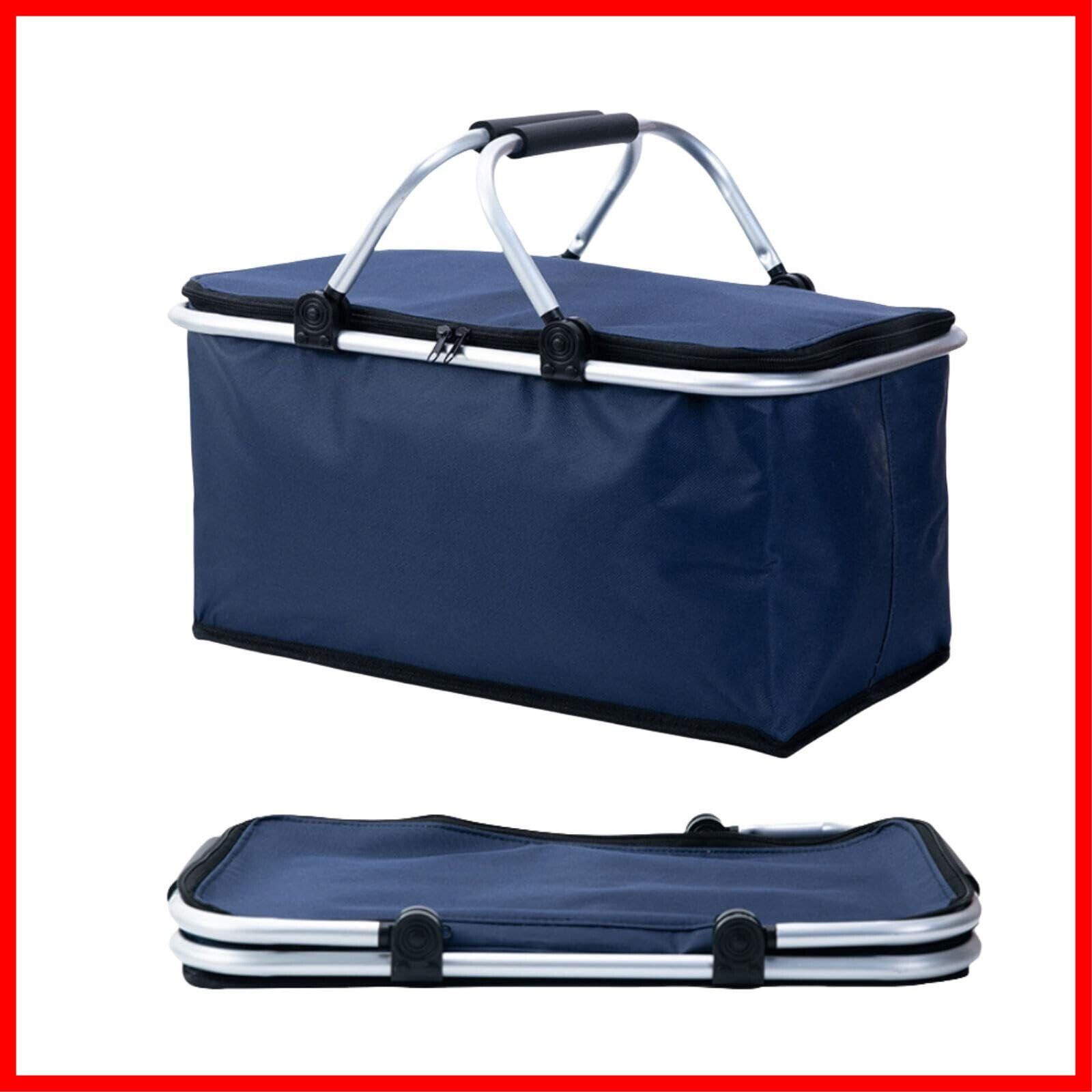 【新着商品】【Hangkaibh】 ピクニックバスケット 保冷バック 大容量 折り畳みクーラーボックス クーラーボックス 30リットル 折り畳み かごごと保冷バック 屋外 便利 ピクニックバスケット ネイビーブルー